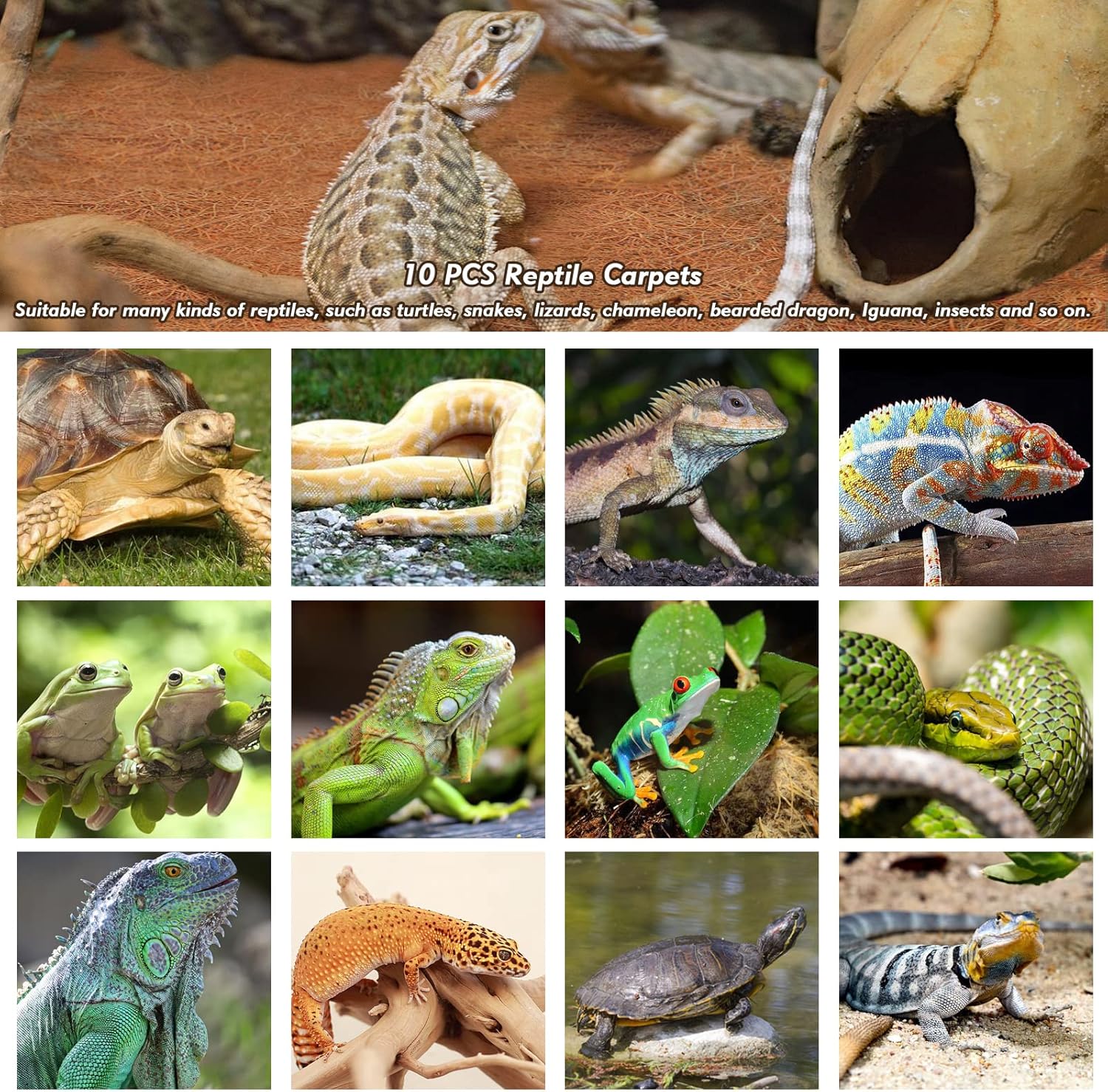 • 【10PCS Coconut Fiber Reptile Carpet】: You will get 10pcs coconut fiber mat, each size is 14 x 14inch(35.6 x 35.6cm) , enought quantity for daily use, such as pet terrarium liner, chicken nesting pads, plant cover mulch mat, etc