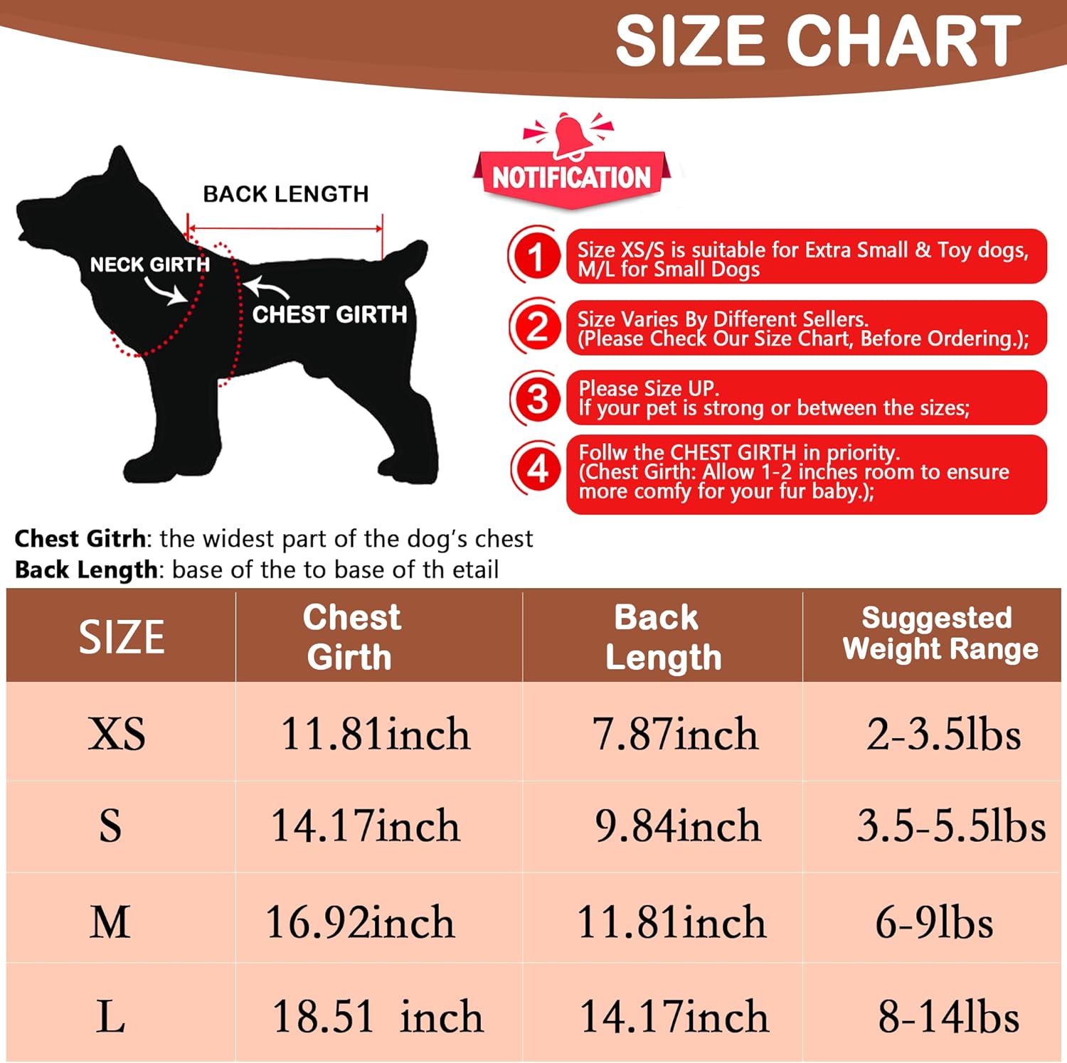 • 【Size】Size Large, Back:14.17",Chest:18.51". Recommended for pet dog 8 to 14 pounds. eg Shih Tzu, Pug, Bichon, Fox Terrier, Jack Russel,King Charles,Miniature Poodle, Miniature Schnauzer,Boston Terrier, Havanese, Beagle, West Highland White Terrier, Papillon.