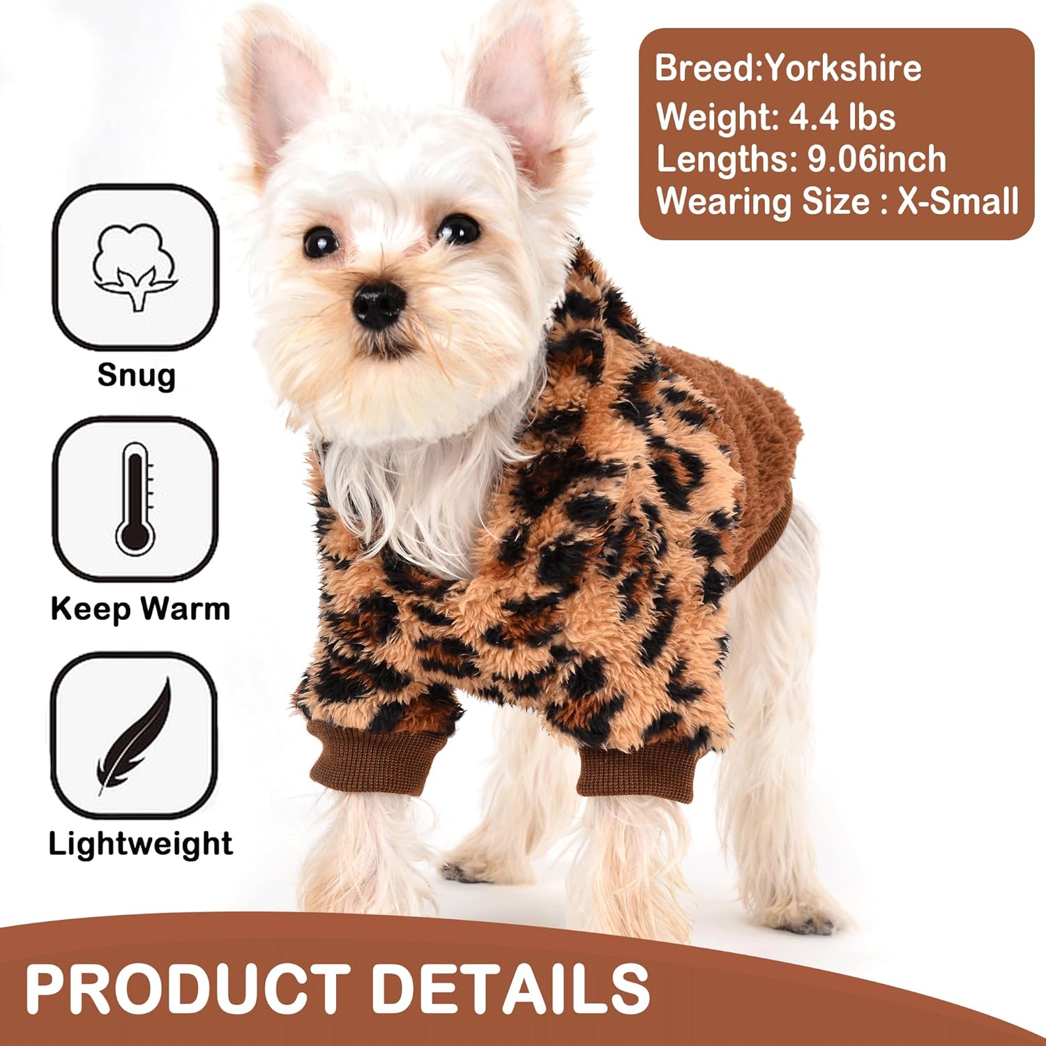 Yikeyo Leopard Dog Clothes Lightweight Fluffy Puppy Hoodie Pet Sweatshirt Doggie Hooded Outfits Cat Apparel (Large, Leopard)