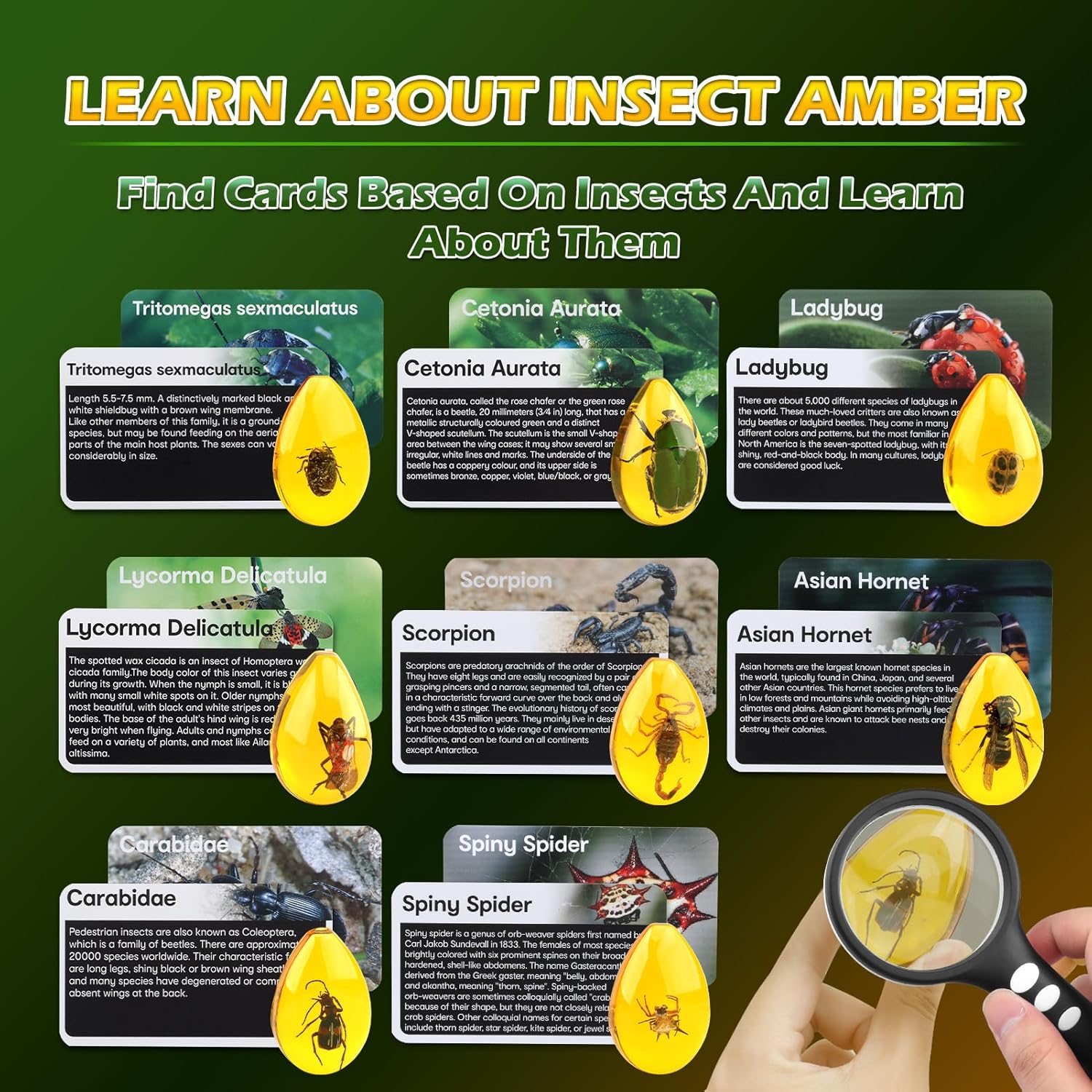 • 【Insect Observe & Learn】The amber dig kit inspires children's love for geology and amber insects. Every time a new amber insect is dug up, kids can find a matching insect study guide to learn about these insects toys, and take a 10x magnifier to observe every detail and texture of the bugs toys.