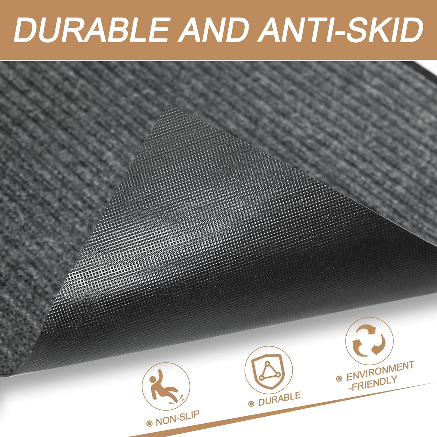 • Non-Slip Bottom: The door mat indoor outdoor entrance rug is made of premium polyester and textured PVC rubber backing which keeps the floor mat stays in place and prevents moisture leaks. The thick and plush topside is gentle on bare feet, but durable for boots.