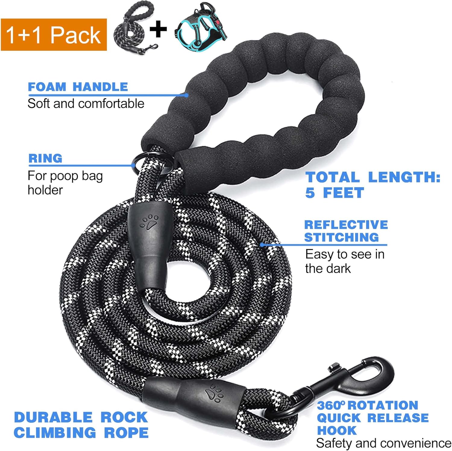 No Pull Dog Harness Adjustable Reflective Oxford Easy Control Medium Large Harness with A Free Heavy Duty 5ft Dog Leash