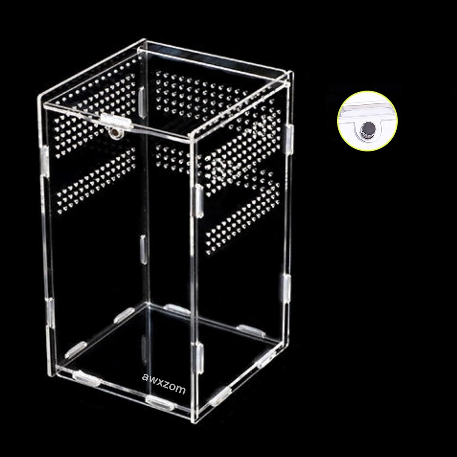 • 【Unique Design】Arboreal Acrylic reptile terrarium has about 500pcs 2mm vents, enough vents to ensure that animals will not suffocate when staying inside