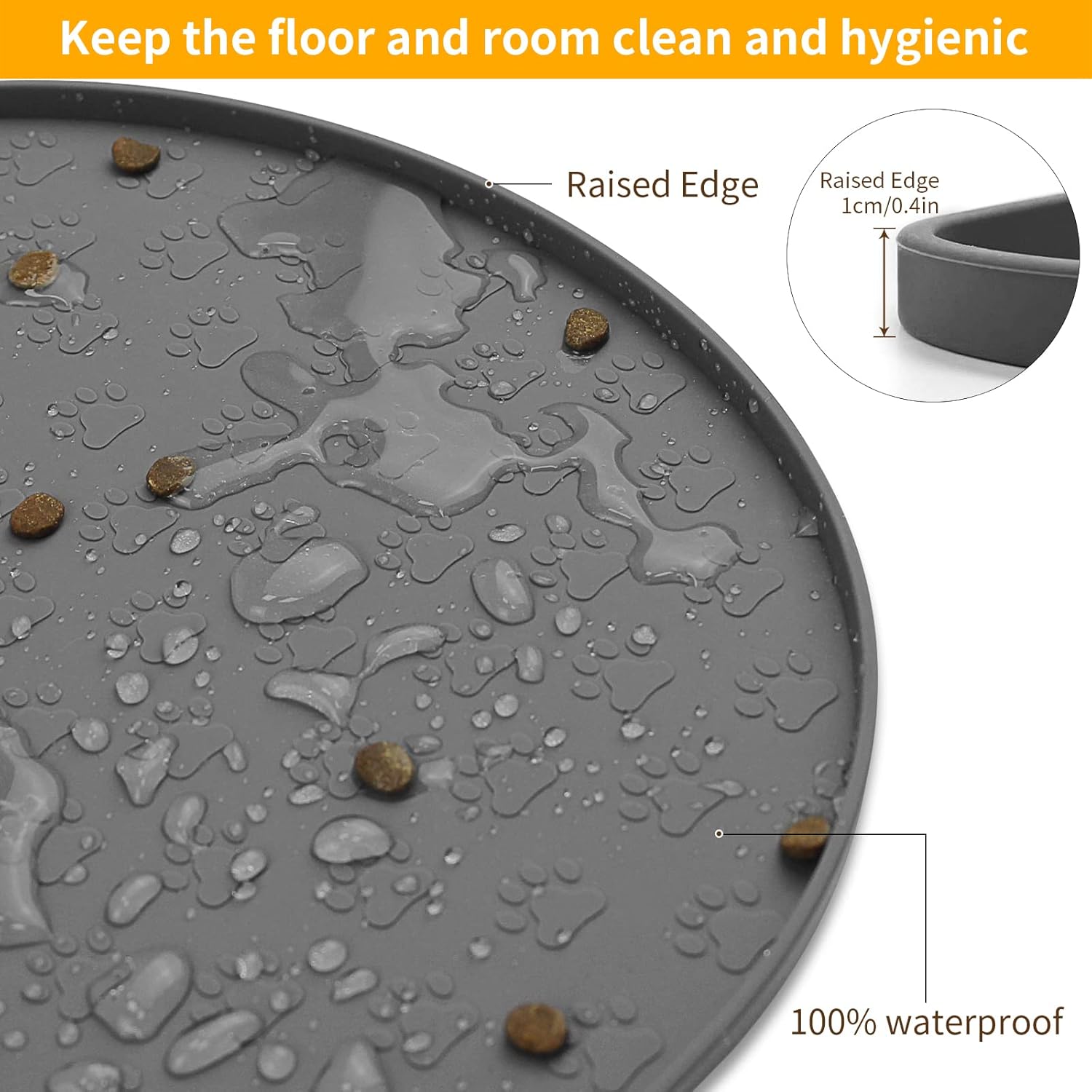 • 100% Waterproof and Anti-Slip: Our dog bowl mat with high-lip edges. Leak-proof pet placemats can prevent food and water overflow, and protect the floor. Prevent pets from eating contaminated food. Non-slip silicone mat keeps the bowl in place.