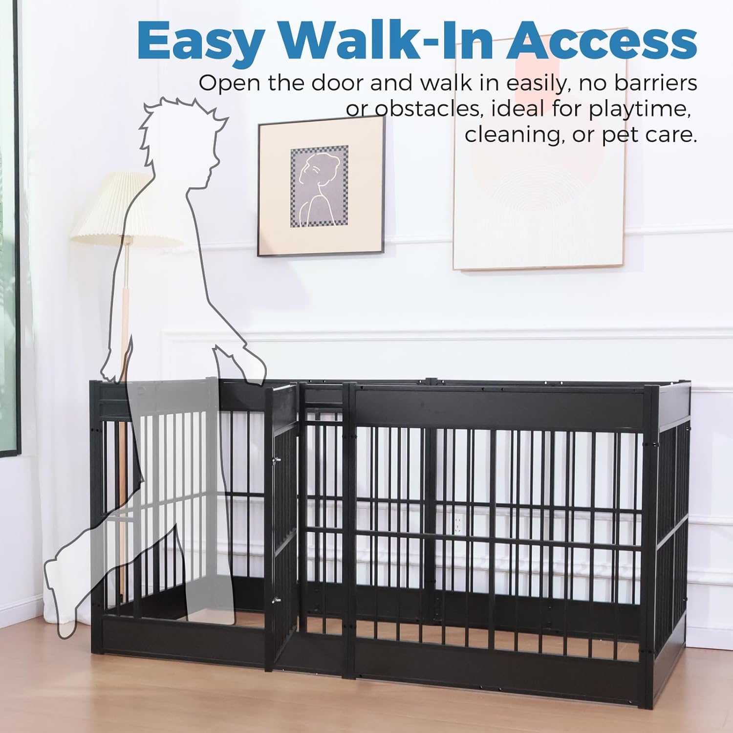 • 【Convenient for Pets to Enter and Exit】 This Dog pens with upgraded locks are designed to prevent dogs from opening and escaping on their own. For double security even if you have a naughty pet. The panel with the door can be installed upside down so that it also takes care of the small size of the dog-safe access.