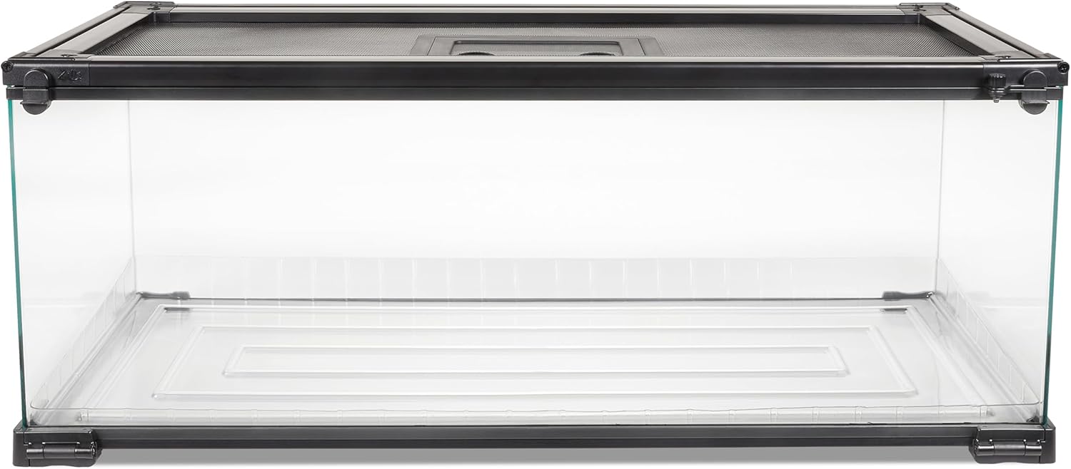 • EASY ACCESS TO YOUR PET. Zilla QuickBuild Terrariums feature a front opening glass door and double hinged locking top screen with feeding port.