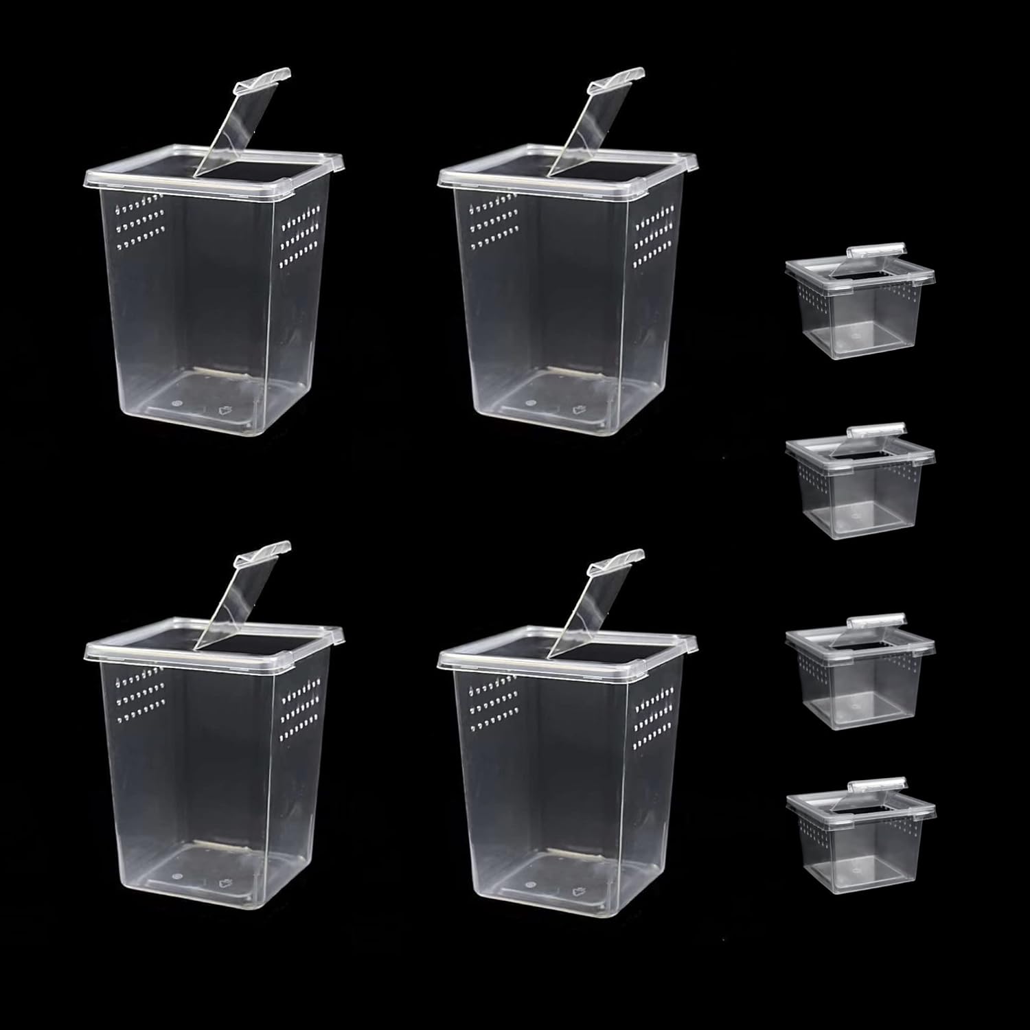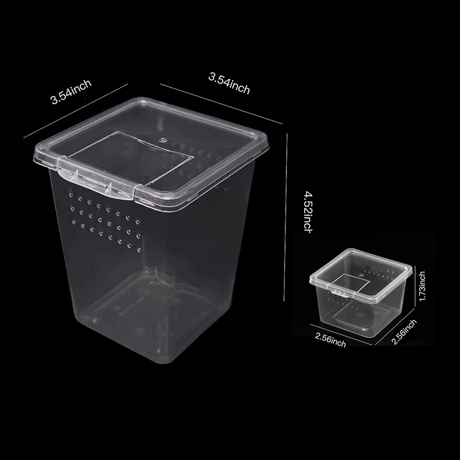 • 【insect Box Set】: package include 4 pcs high insect terrarium and 4 pcs small breeding box ,high box measure about 3.54"L x 3.54"W x 4.52"H, small box measure about 2.56"L x 2.56"W x 1.73"H,Made of quality plastic material, good transparency, sturdy , reusable, easy to clean, easy to clean, lightweight and light, suitable for pet incubation, small pet breeding box, temporary feeding or outdoor transportation and carry.