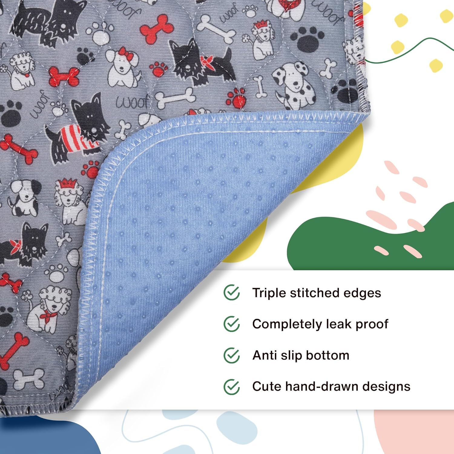 • Reusable and Washable: Our dog pee pads are washable puppy pads, perfect for puppy essentials and as dog training tools. Durable, washable pads for dogs. Machine wash and dry.