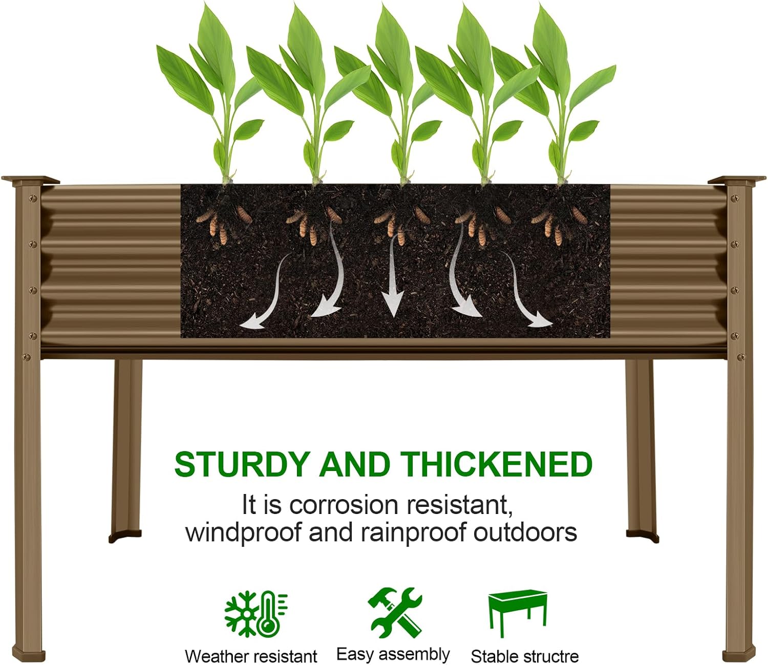Land Guard Galvanized Oval Large Metal Raised Garden Bed with Legs for Vegetables (Beige)