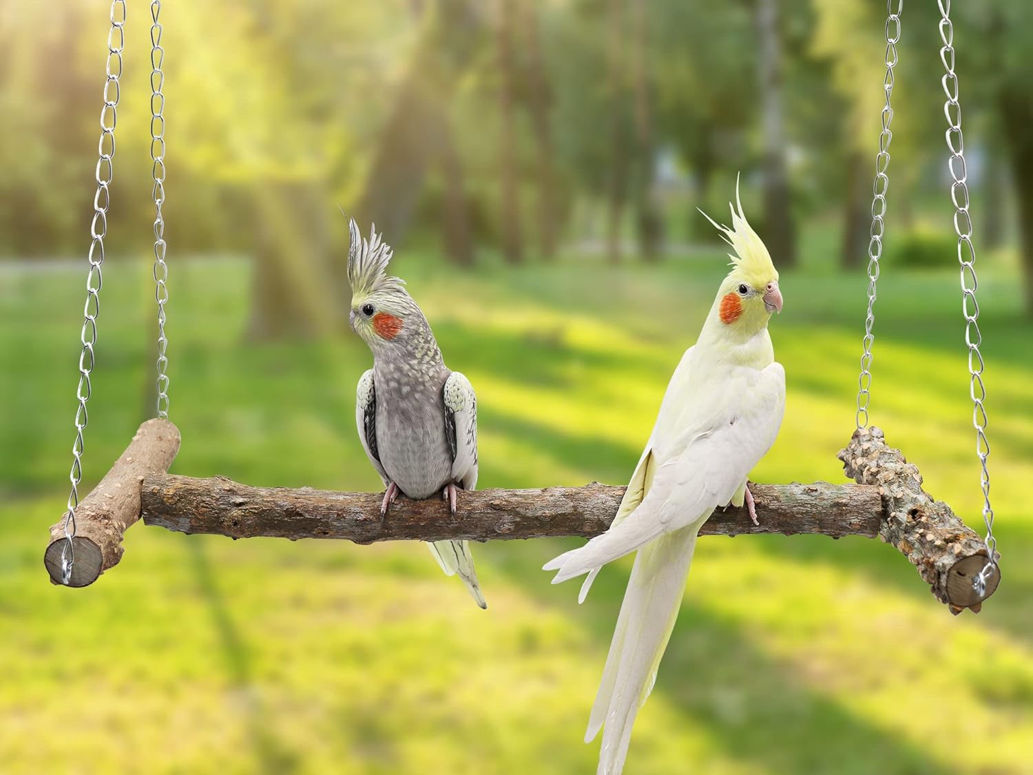 • 【Natural material】: The bird swing toy is made of wear-resistant and bite-resistant natural pepperwood, which is suitable for the bird's daily biting and beaking. The pepper wood is connected by pre-embedded bolts and nuts. The top chain and hook are made of stainless steel, which are durable and not easy to rust.