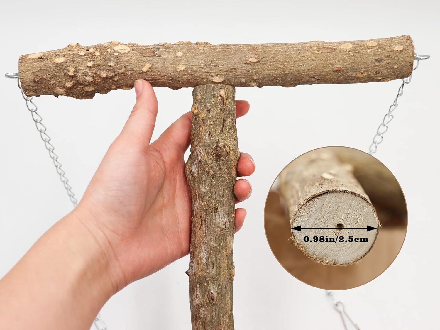 Large Bird Perch Swing Toy, Natural Pepper Wood Parrot Perch Stand Toy, Hangable Birdcage Accessories with Stainless Steel, Bird Chewing Toy for Parrot Parakeet Budgies Lovebirds(18×10 Inches(L×W))