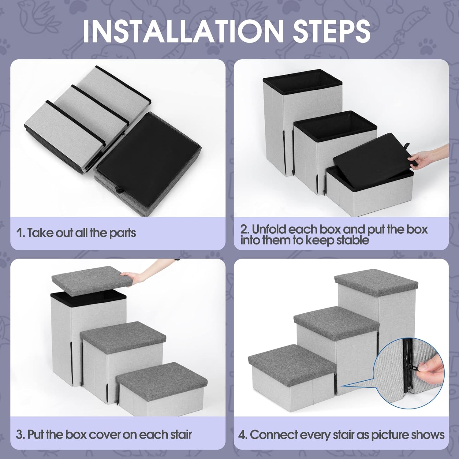 • Added Storage: Each step has a padded, removable top that opens up to reveal added storage space that's perfect for keeping pet toys, treats, blankets, extra linens, or just about anything else