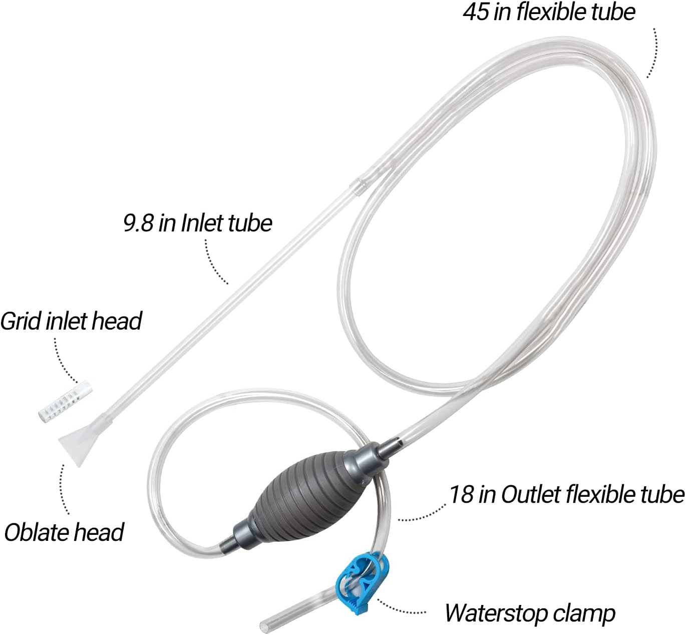 • 【2 IN 1 Multifunctional Siphon Gravel Cleaner Set】: It can work as water changer or tank cleaner as it has grid inlet head and oblate head, you can install the head as you need. Whether you have a small or extra-large tank, this flexible terrarium cleaning kit works well with all types of terrarium, the tube is long enough(79inch) and flexible, convenient to use.