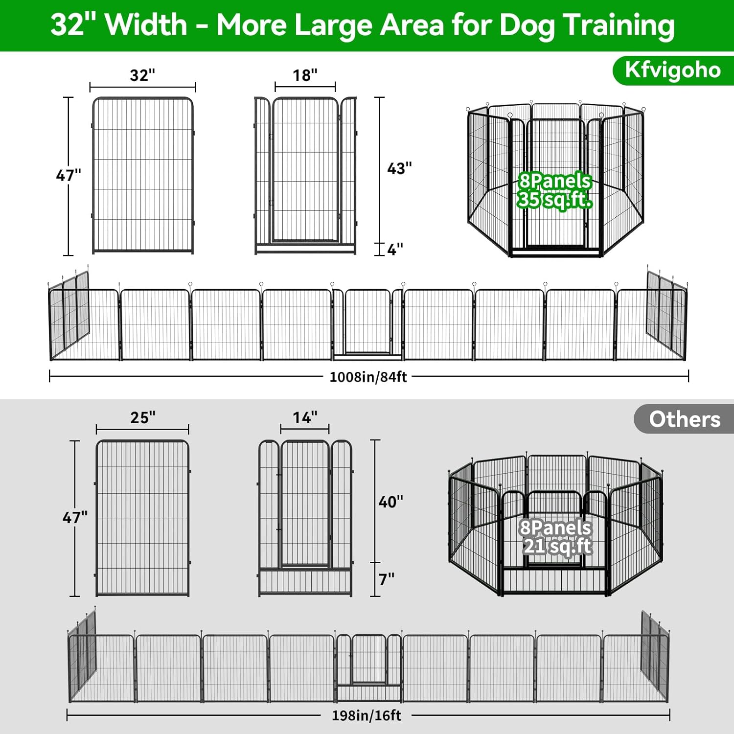 • 【Anti-Rust Coatings Material】 Kfvigoho puppy playpen made of heavy-duty metal, sturdy and durable, steel wire smooth and solid, pet dogs couldn't damage or chew it, anti-corrosion coatings and rust-proof process helps panels works well outdoor and extend its life, the indoor and outdoor dog pen great for people with dogs