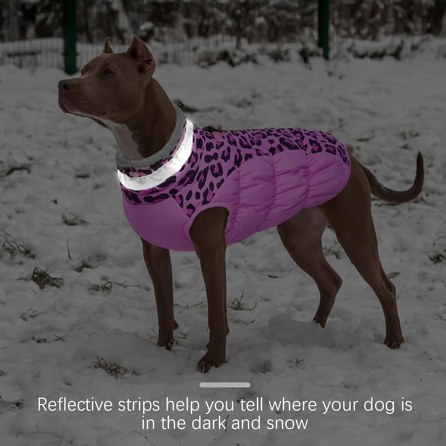 FUAMEY Dog Coat for Small Dogs,Waterproof Dog Winter Jacket with Harness Built in Puppy Cold Weather Coats Reflective Pet Vest with Zipper Warm Fleece Dogs Snowsuit Windproof Pink Leopard XS