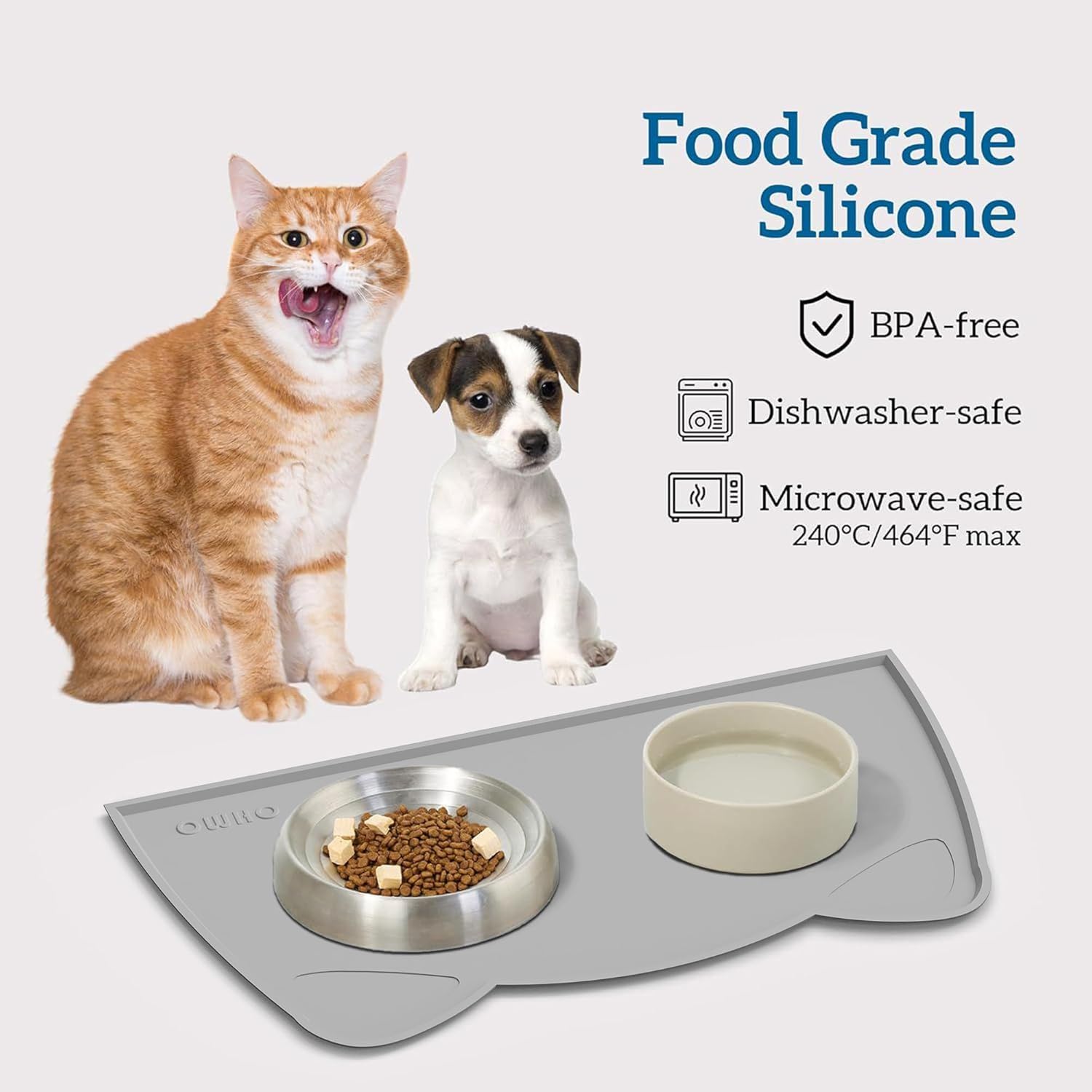 OHMO - Cat Food Mat, Silicone Pet Feeding Mat for Floor Non-Skid Waterproof Dog Water Bowl Tray, Easy to Clean Pet Placemat