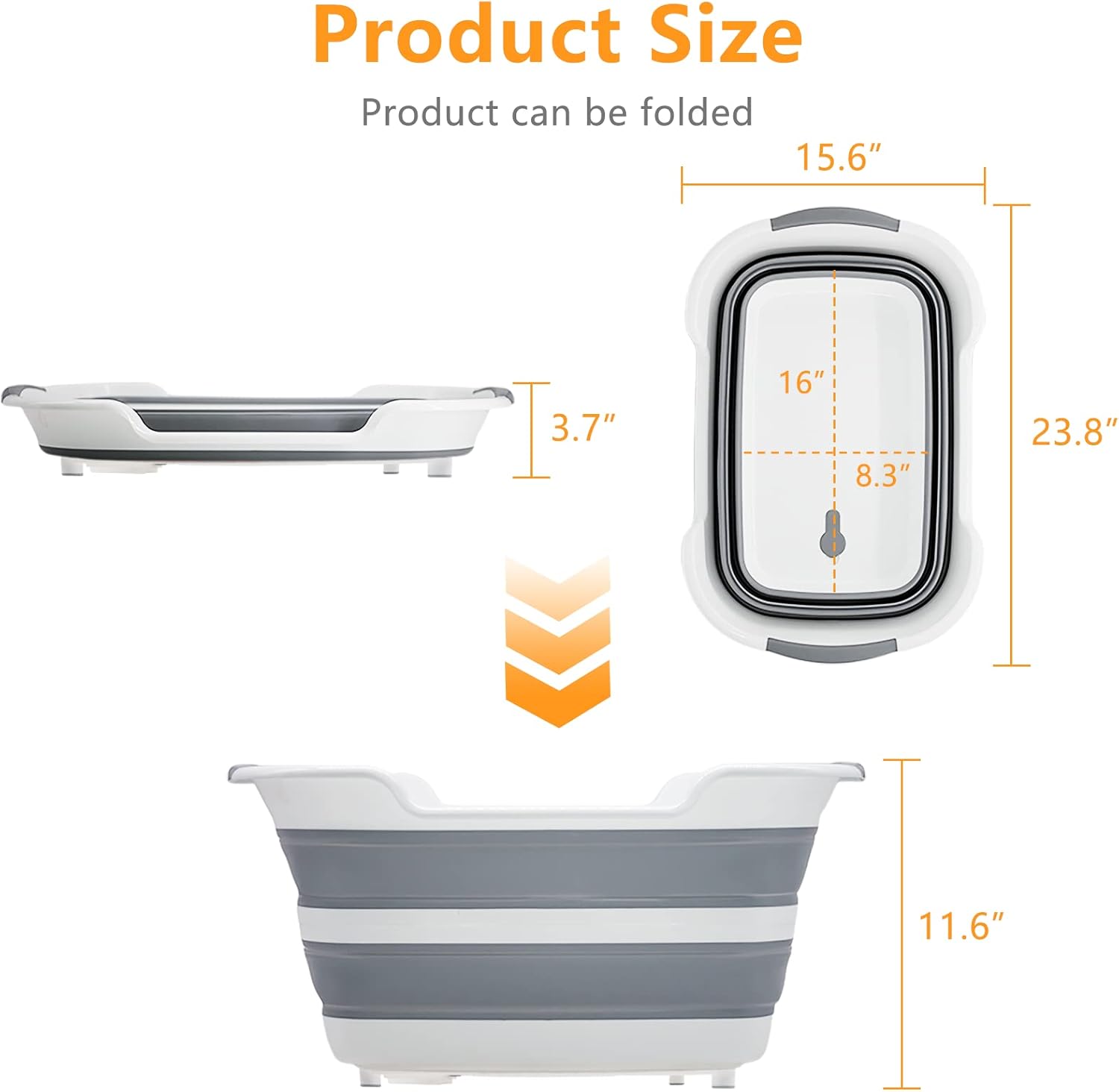 • 【Space-Saving and Foldable】The collapsible bathtub is made of flexible thermoplastic rubber (TPE) + premium PP material. Expanded size:23.8 x 15.6 x 11.6(h) inches.Collapsed:3.7 inches. The exterior bottom dimension is about 16 x 8.3 inches. Capacity: 27 L / 7.1 gallons