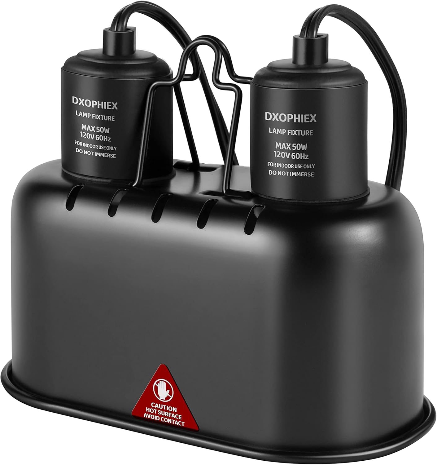 • 【Dual Lamp Fixture&Max 40 W】:The reptile lamp fixture can be matched with two bulbs at the same time and each socket can bear max 40W. Suitable for various types of heat lamp for reptiles (heating lamps, ceramic heating lamps, UVB reptile lamps, daylight lamps and nightlight lamps). You can freely replace according to the actual use needs.