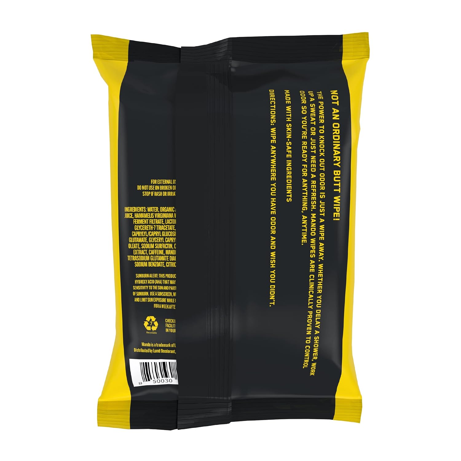 • SERIOUSLY SKIN SAFE - Mando Deodorant Wipes are aluminum free, hypoallergenic, and safe for all odor prone areas - pits, packages, & feet.