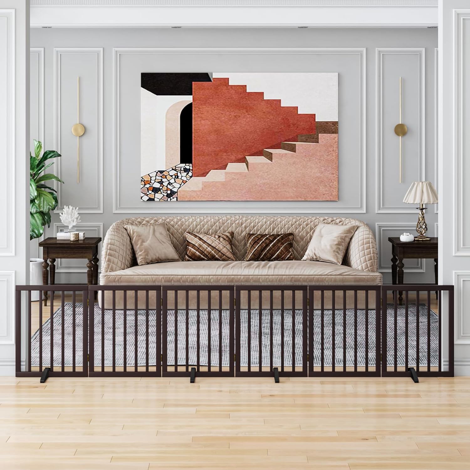 Dog Gates for The House Doorways Extra Wide 110 Inches Wood Freestanding Pet Gates for Dogs Indoor Fence with Support Stands
