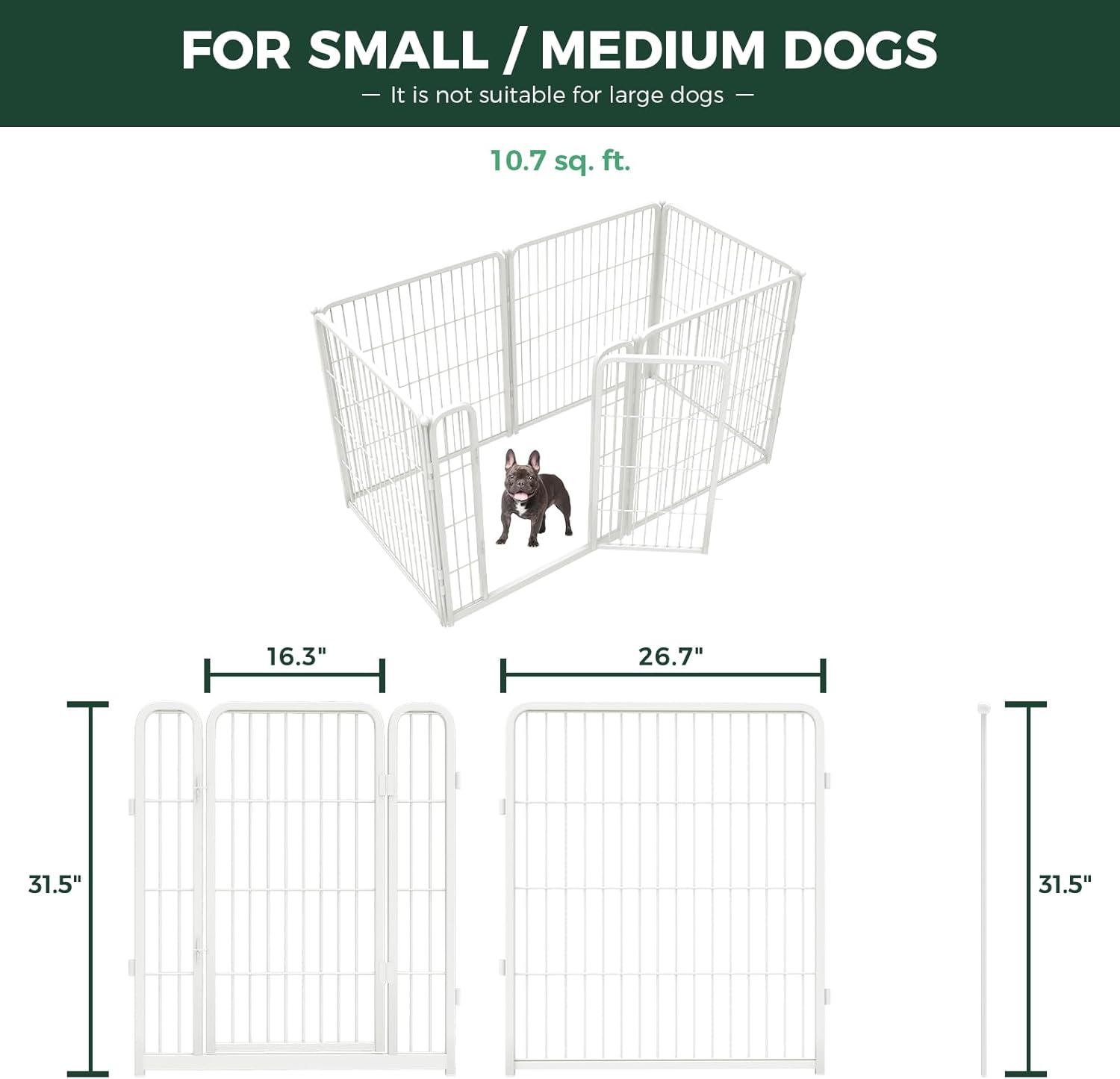 FXW Homeplus Unleashed Indoor Dog Playpen - Stress-Free and Safe Play, Heavy Duty 32 Inch 6 Wire Panels Dog Pen for Small and Medium Dogs, White│Patented