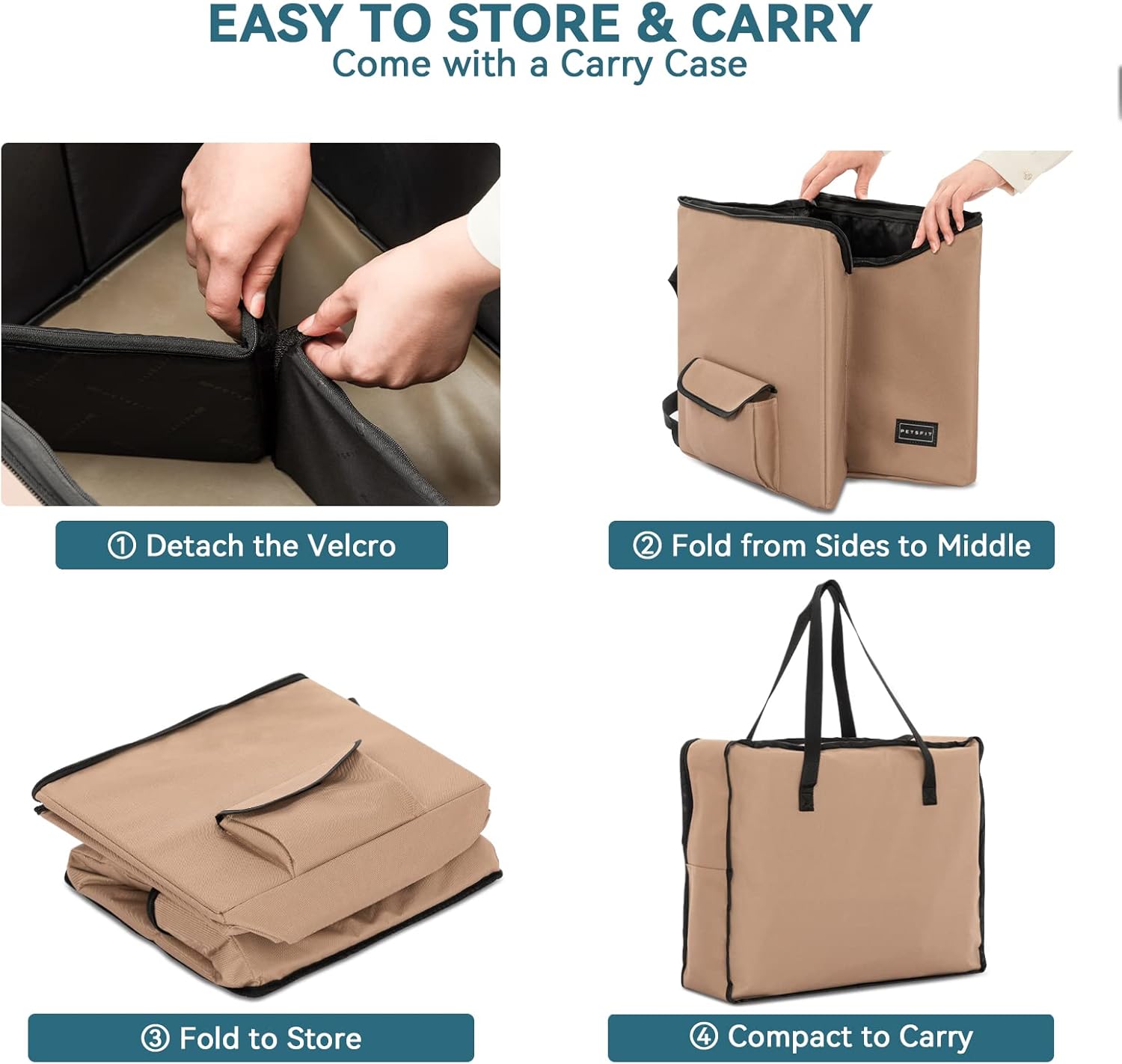 • [Portable Pet Car Seat] The dog booster seat come with a carrying case, making it easy to fold and store when not in use and saving space. The puppy car seat with dimensions of 15" L x 16" W x 14" H, is suitable for both front and back seats in a variety of car types and can be installed or removed in just a few minutes.