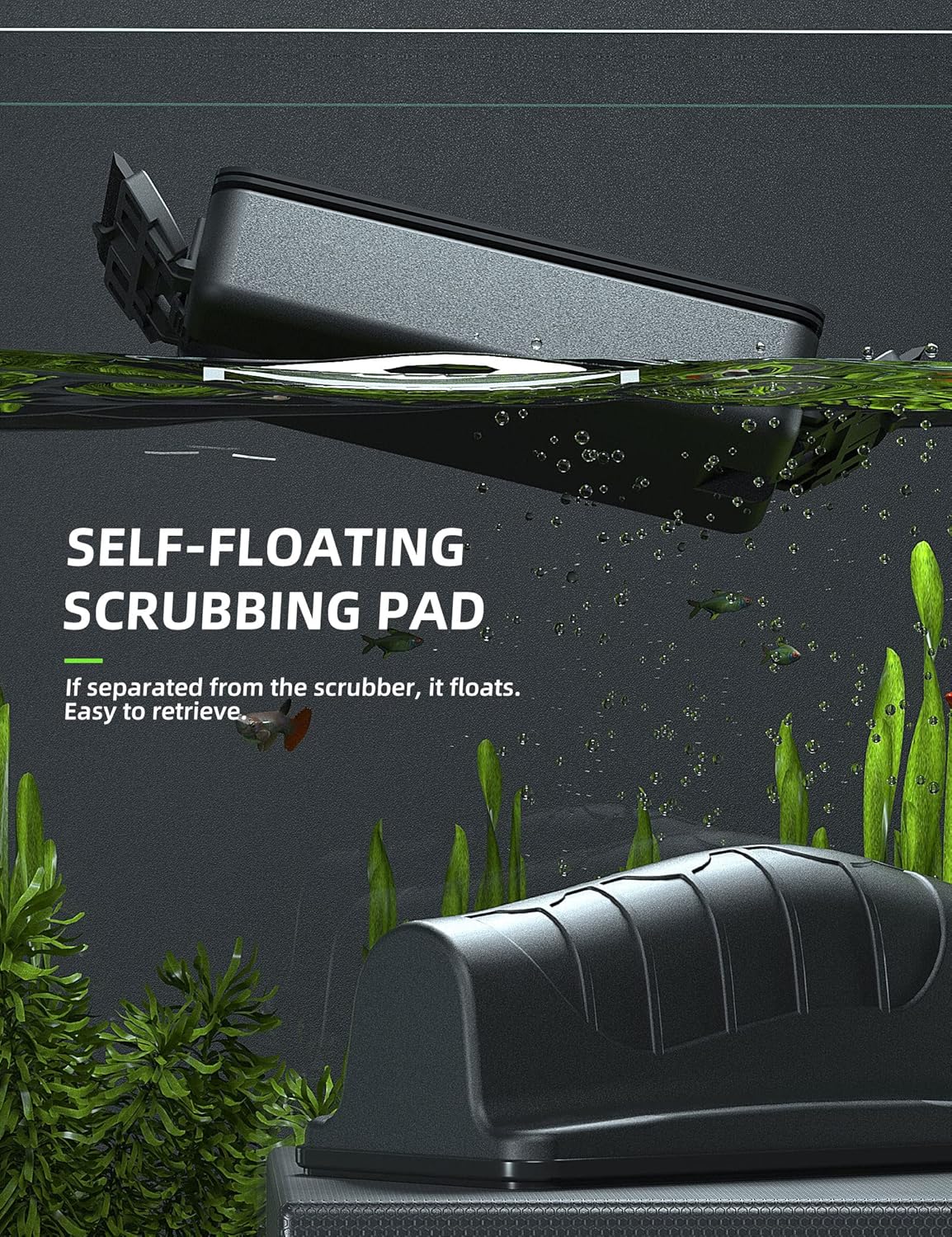 • Simply move the no-scratch, felt-lined handle and inside your aquarium, the scrubber follows, cleaning as it goes
