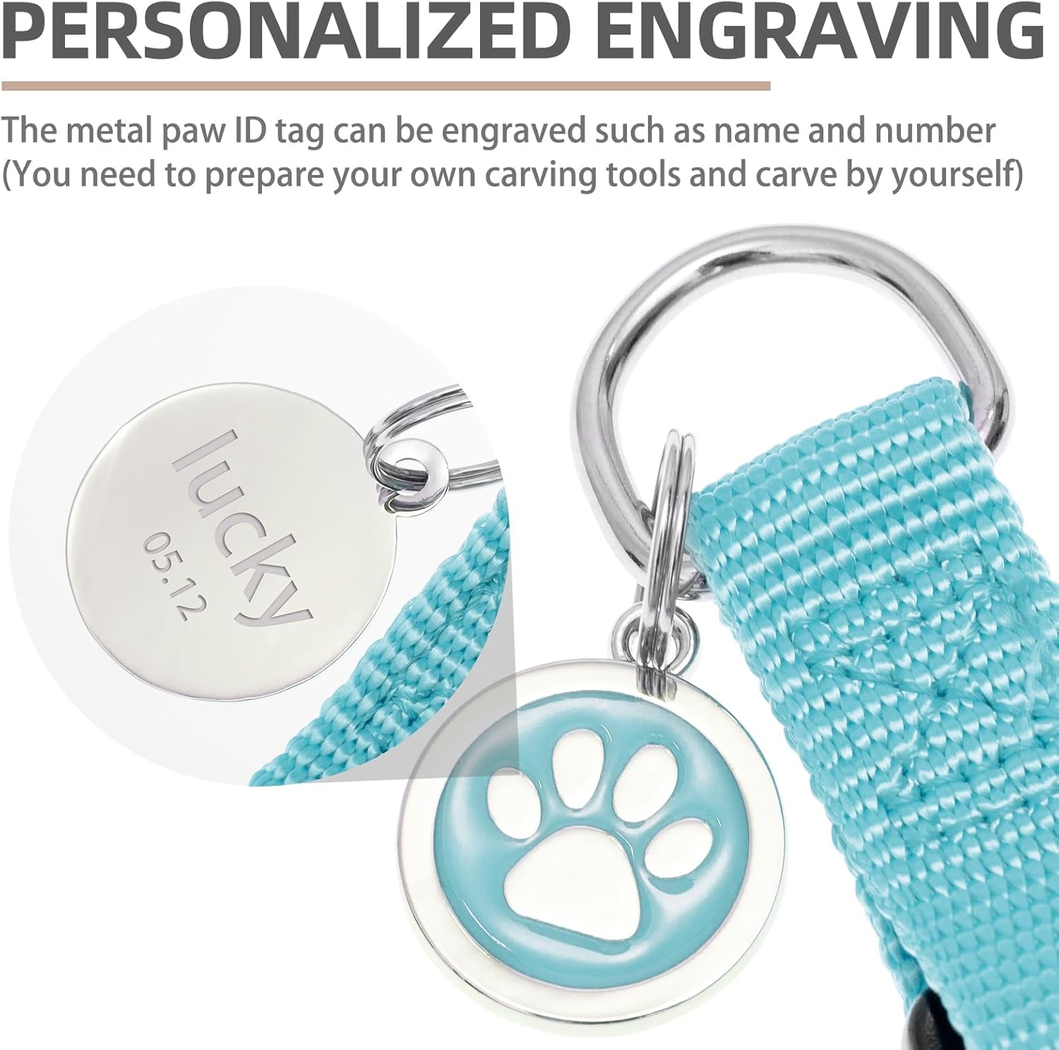 • [Cute ID Tag for DIY] - Each harness is equipped with a metal ID tag, and the front is a cute paw pattern, while on the back, you can engrave whatever you want, such as the dog's name and so on. It does not corrode as easily as wooden labels and is durable. You can also remove it when washing the harness.