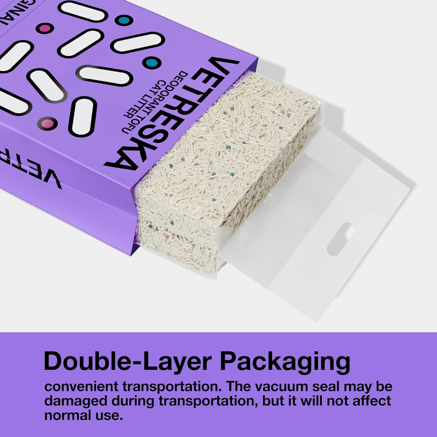 • 【Vacuum Packaging】 Our tidy cat litter is packaged in an inner vacuum package for secure transportation and easy storage. When you receive the package, it may initially appear solid like a brick, but simply open the inner bag and allow some air in. Within moments, the litter will loosen up and be ready for use