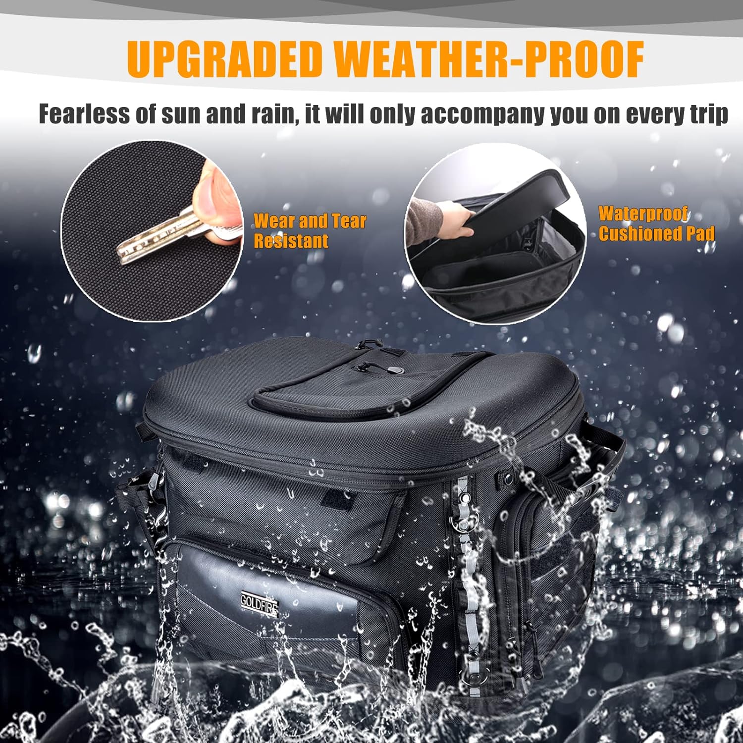 - ✅WEATHER-PROOF AND KEEP SHAPE:✅ A premium, luggage-quality dog motorcycle carrier is made of 1680D oxford for weather-proof, not afraid of rain or snow to keeps your pup warm and dry.It also includes a rain cover for inclement weather. Plus,UV resistant fabric that can withstand the sun's exposure. The internal metal frame and a nice rigid base can keep dog carrer's shape and protect dog well while the moto pet carrier is surrounded by softside cloth to ensure your buddy doesn't get hurt.