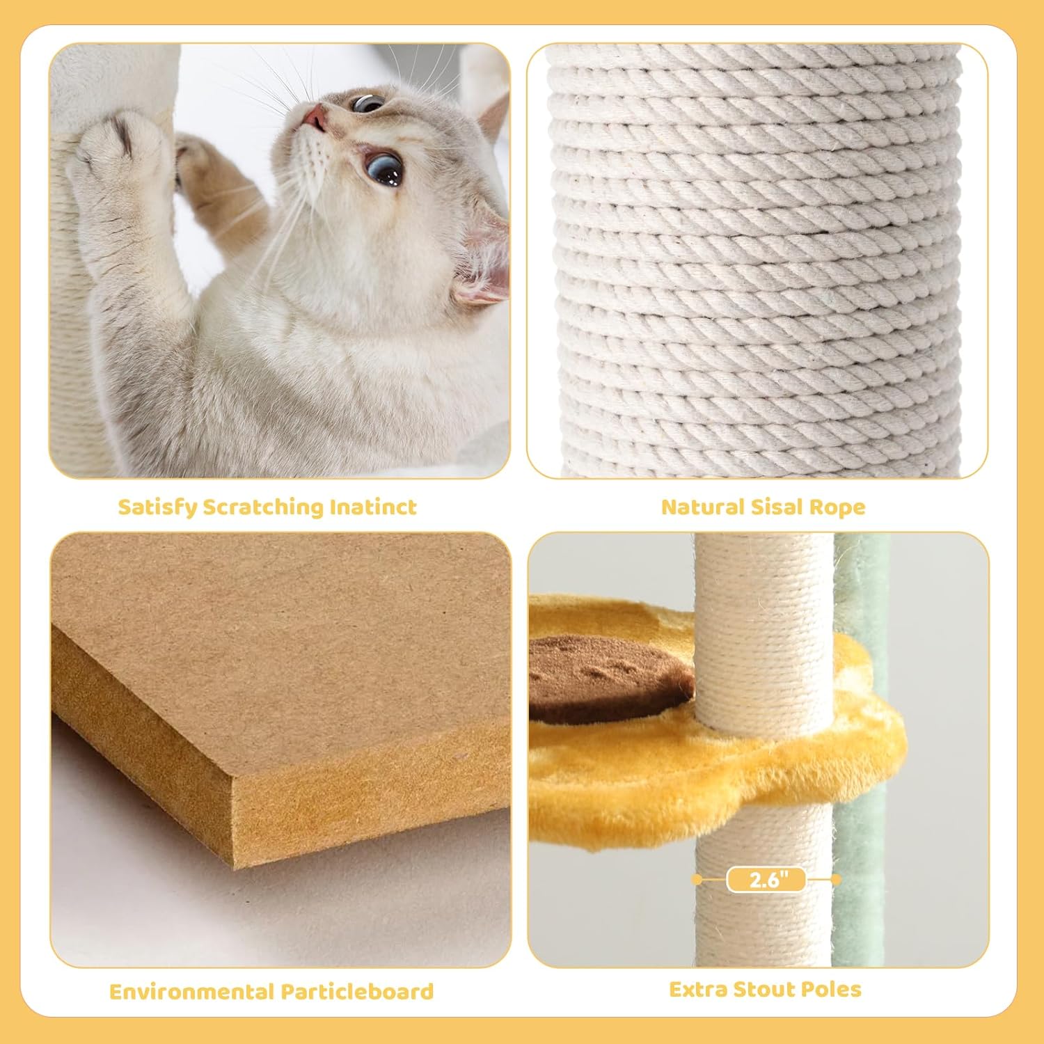 • Cute and Fashionable Sunflower Design:The adorable sunflower design not only entertains your cats but also enhances your home decor. This cat climbing tree is a stylish and functional addition to any living space.