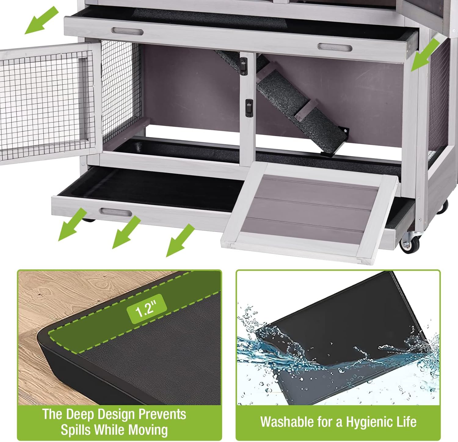 • Rabbit hutch with TWO DEEPER pull out tray that wonโ€™t leak off and easy-to-clean