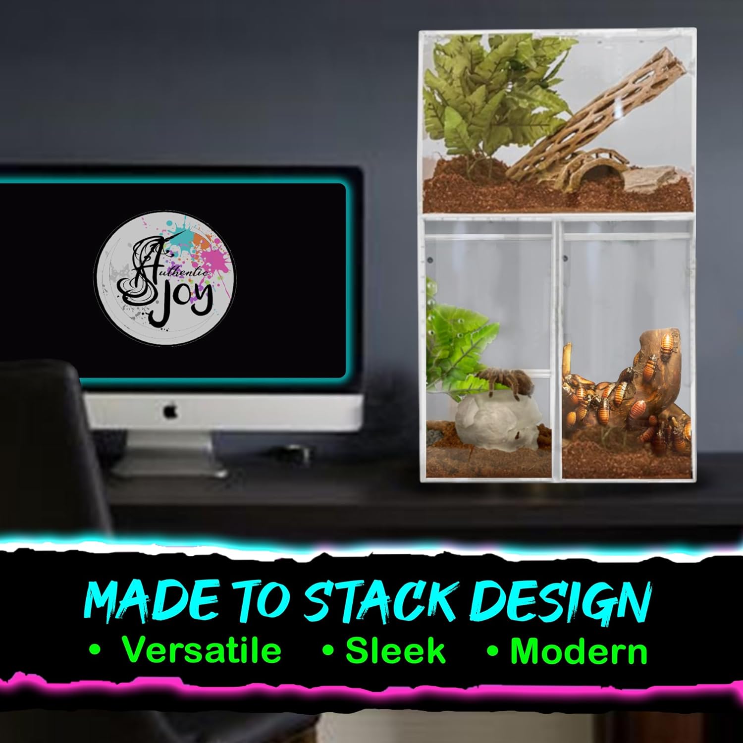 • Houses Terrestrial & Arboreal Animals: Sizing at 14”x10”x7” our critter keeper can be stacked for vertical or horizontal use which permits housing terrestrial and arboreal animals, making this an ideal adult spider terrarium. You can convert our arboreal tank into a hermit crab cage, a frog tank, snail terrarium, snake tank or a tarantula terrarium - making it a suitable home for your small pet or live insects.