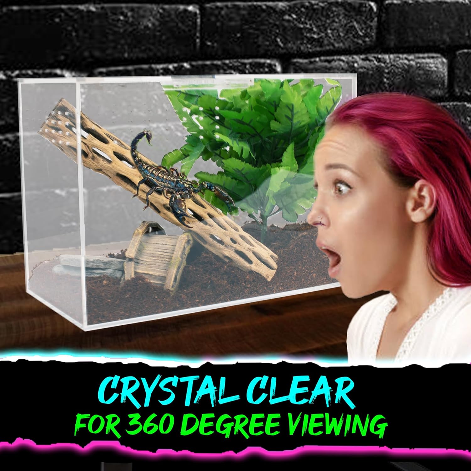 Tarantula Enclosure XL (10”x7”x14”) Reptile Terrarium w/Sliding Magnetic Door-Great Reptile Tank for Terrestrial or Arboreal Animals- Acrylic Terrarium for Juvenile or Adult Spiders- Hermit Crab Cage