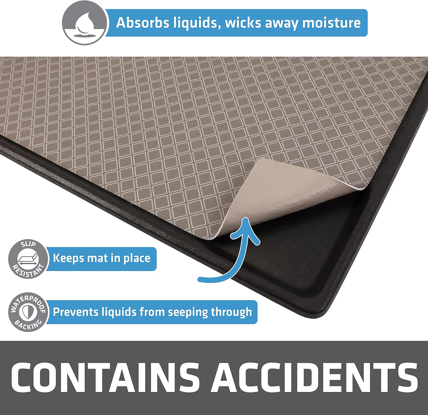 • CONTAINS ACCIDENTS & PROTECTS FLOORS: Drymate Dog Crate Mats are made with a thin yet absorbent material that contains urine inside kennels and provides a sure-footed surface for your pet’s paws (great for travel). Place under the crate to muffle sound and protect floors from scuffs and scratches. MULTI-USE: Can also be used as a reusable potty pad or cat litter mat.