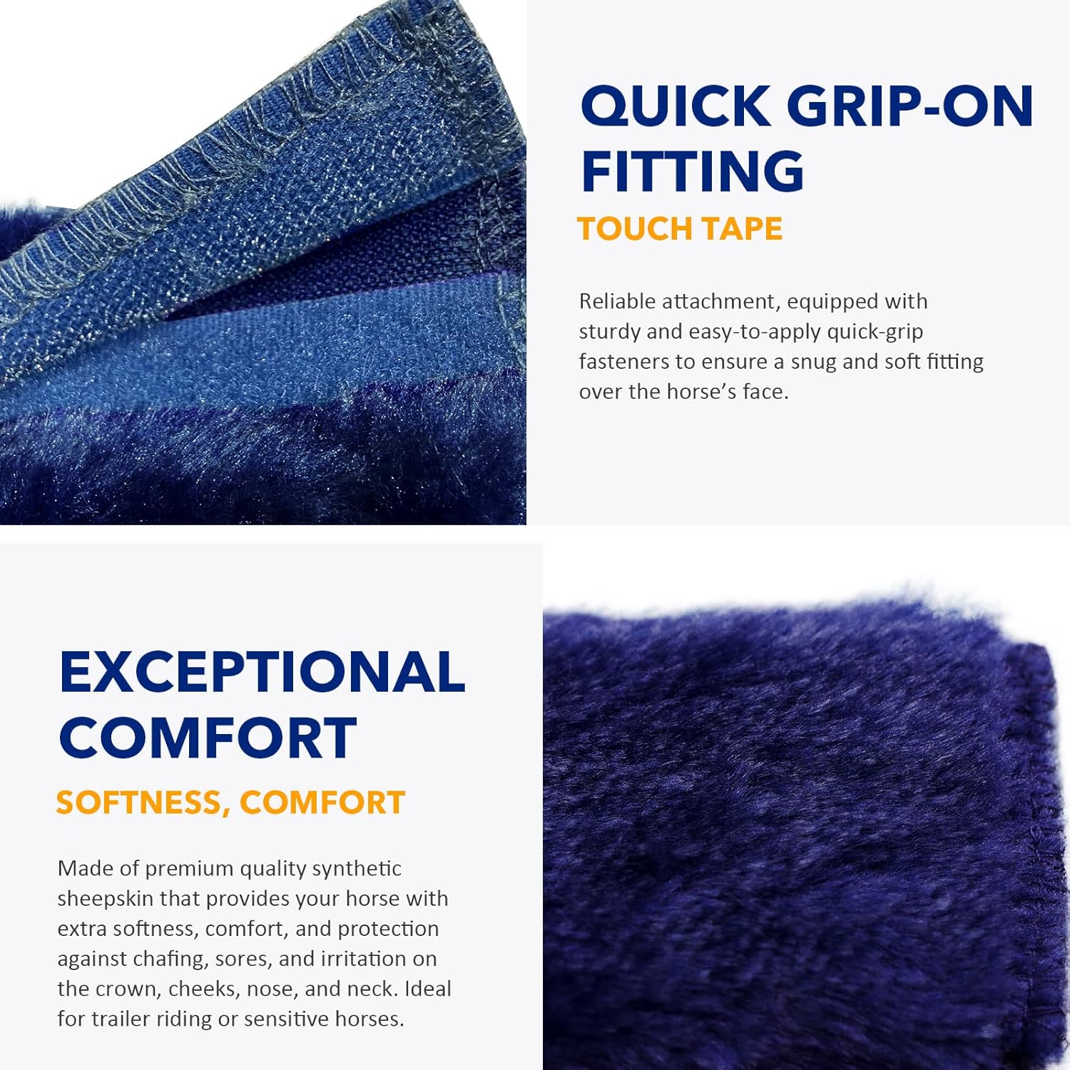 • EXCEPTIONAL COMFORT: Made of premium quality synthetic sheepskin that provides your horse with extra softness, comfort, and protection against chafing, sores, and irritation on the crown, cheeks, nose, and neck. Ideal for trailer riding or sensitive horses.
