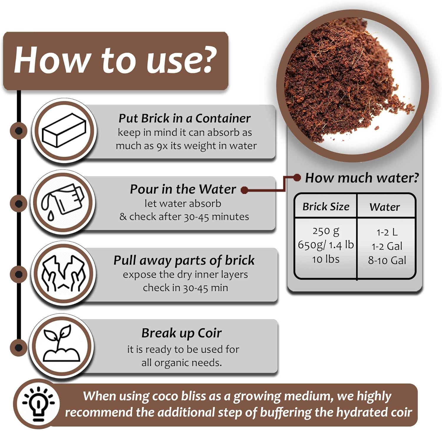 - Coco Bliss Coco Coir (10lb Block) - Coco coir is a 100% organic and renewable soil amendment that works as a growing medium for succulents, herb planters, seedlings, vegetables, flowers, indoor house plants, indoor gardens, and more. Unlike peat moss, coco coir is 100% natural and doesnโt contribute to the destruction of natural wetlands.