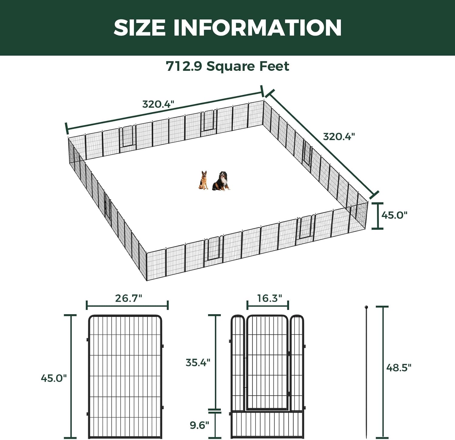 • Super easy to assemble: It won’t take you more than 5 minutes to assemble these portable dog fences as well as pack them away due to the rod-connected design. Meanwhile, panels can be added or removed freely to give you a fully flexible area and arrange the dog pen in any shape you need.