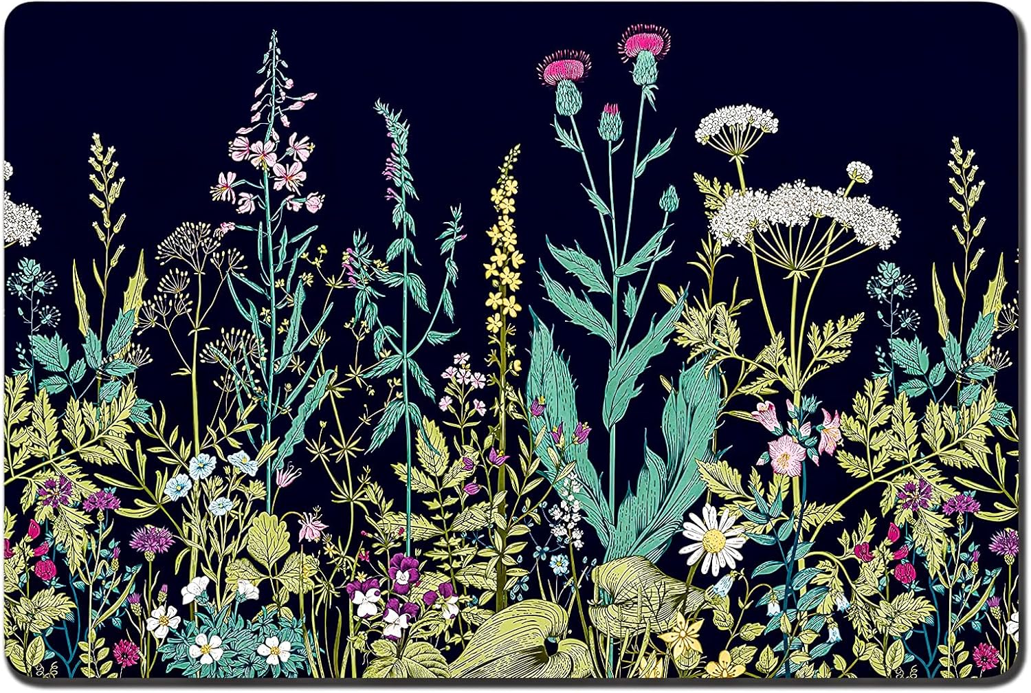 Rnivvi Dog Food Mat, 16" x 24" Flower Absorbent Dog Cat Bowl Mat for Food and Water, Cute Anti-Slip Rubber Pet Feeding Rug Protect Floors, Puppy Placemat for Feeding & Watering Supplies,Black Floral