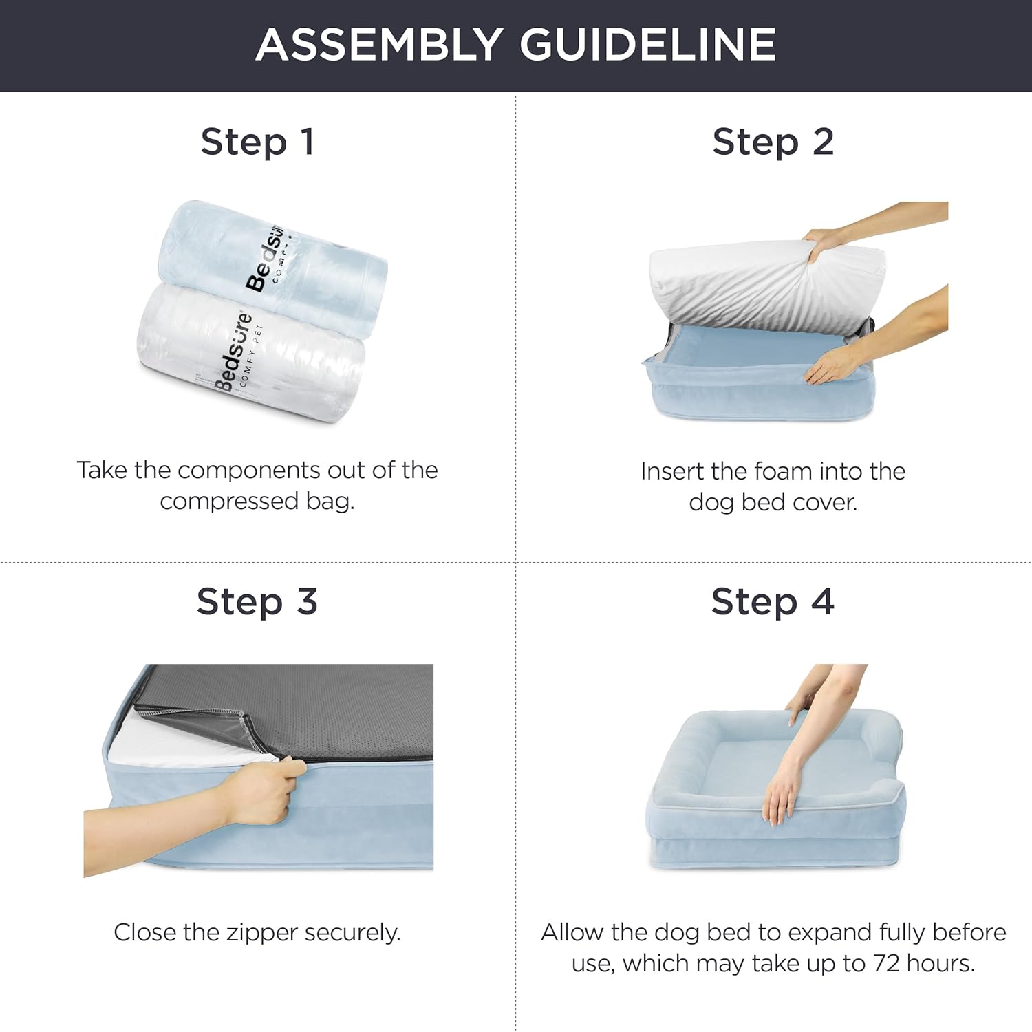 Bedsure Orthopedic Dog Beds Large Sized Dog - Washable Large Dog Cat Bed Waterproof, Comfort Dogs Couch Sofa with Washable Removable Cover, Pet Bed with Nonskid Bottom, Light Blue, 35"