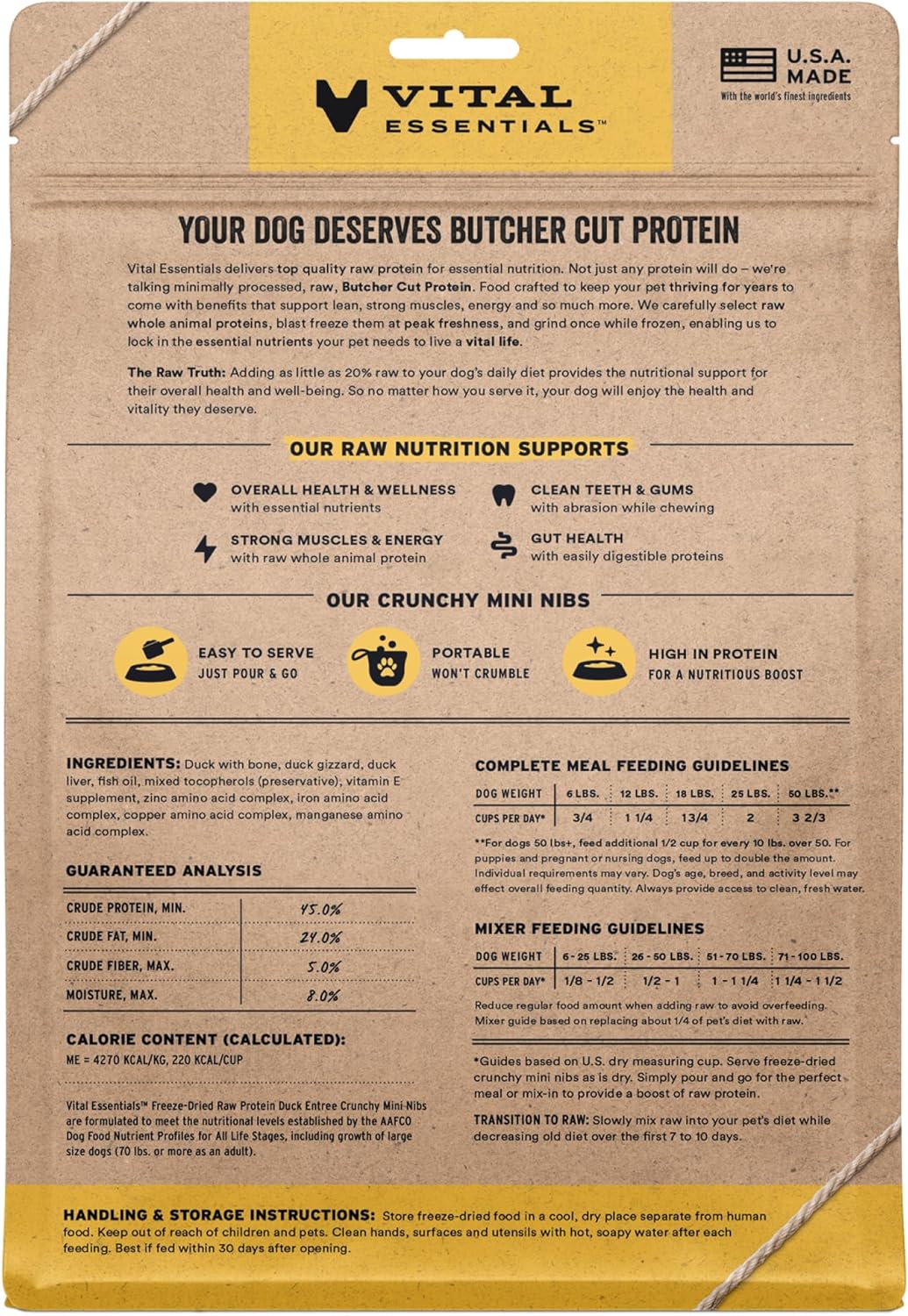 Vital Essentials Freeze-Dried Raw Duck Meal or Mixer Dog Food Crunchy Mini Nibs, 14 oz