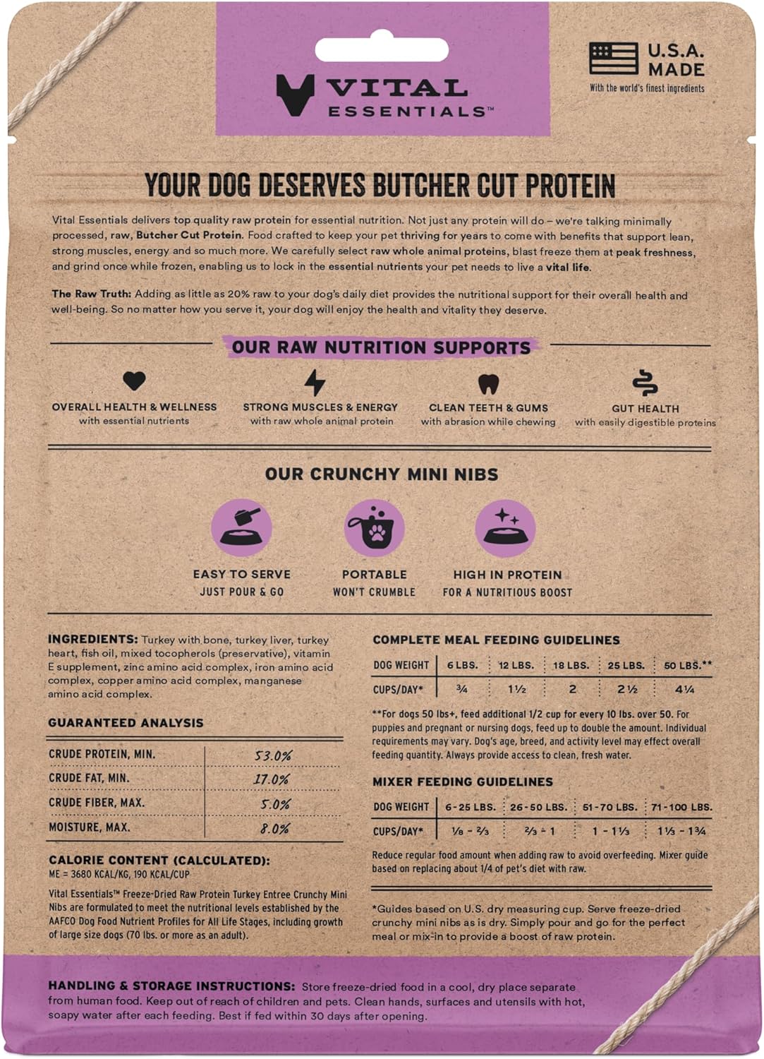 Vital Essentials Freeze-Dried Raw Turkey Meal or Mixer Dog Food Crunchy Mini Nibs, 5.5 oz