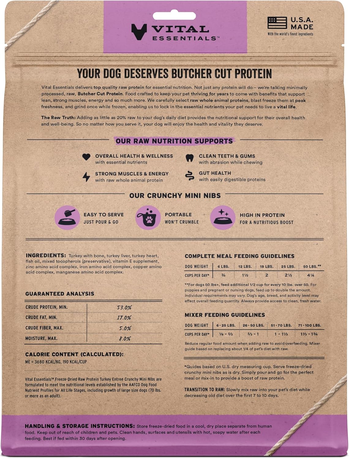 Vital Essentials Freeze-Dried Raw Turkey Meal or Mixer Dog Food Crunchy Mini Nibs, 25 oz