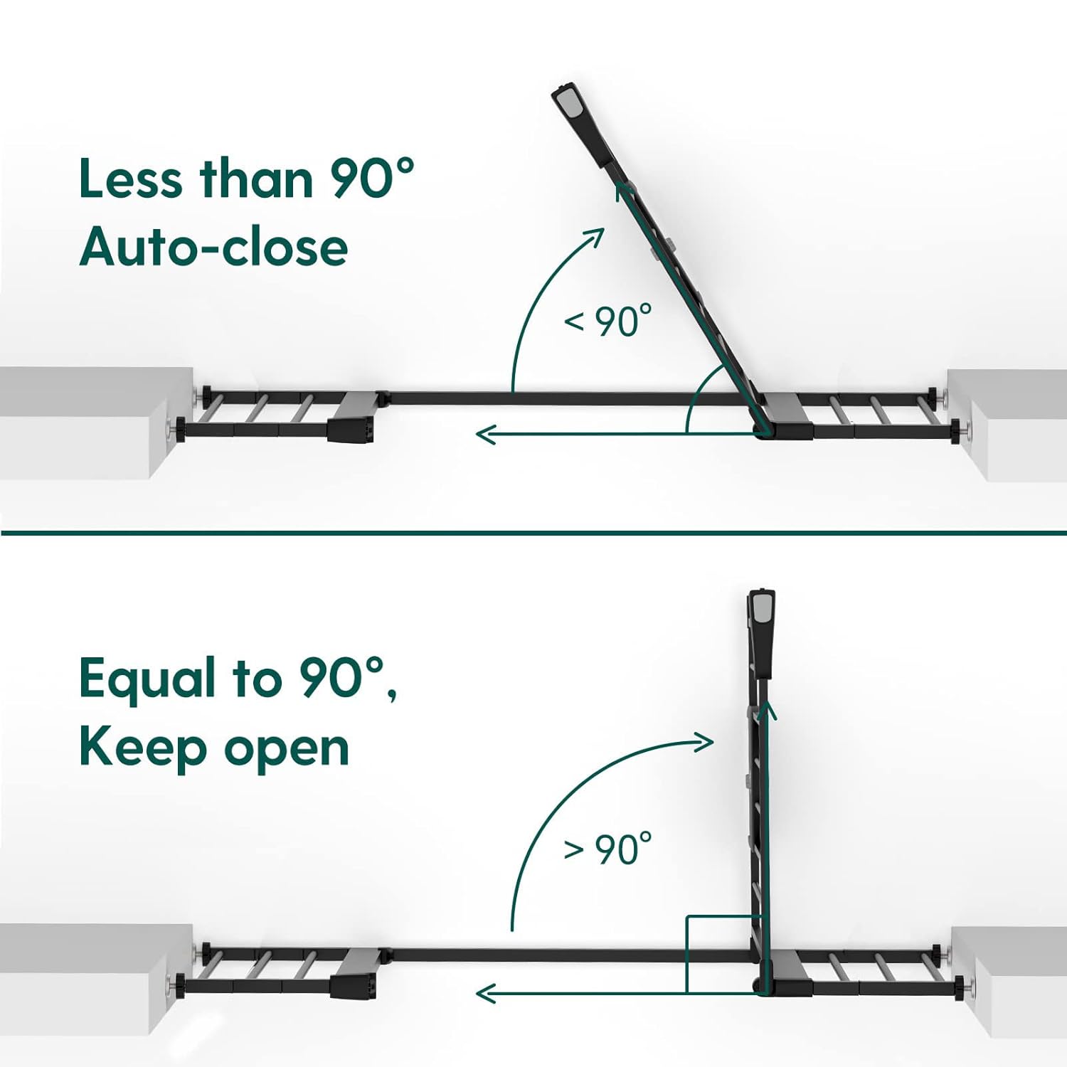 • AUTO CLOSE: This safety gate has an auto-close function that gently closes the gate and a stay-open feature that keeps it open. It can be opened easily with one-hand operation even while holding a baby, free to go through from both sides