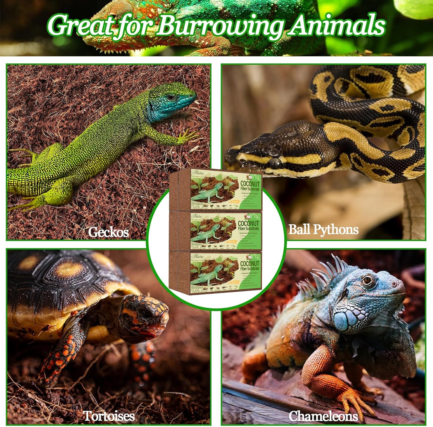 Riare 6 Pack Natural Coconut Fiber Substrate for Reptile- Premium Compressed Coconut Husk Terrarium Bedding for Reptile, Tortoise, Frogs, Snakes Hermit Crabs, Burrowing Animals