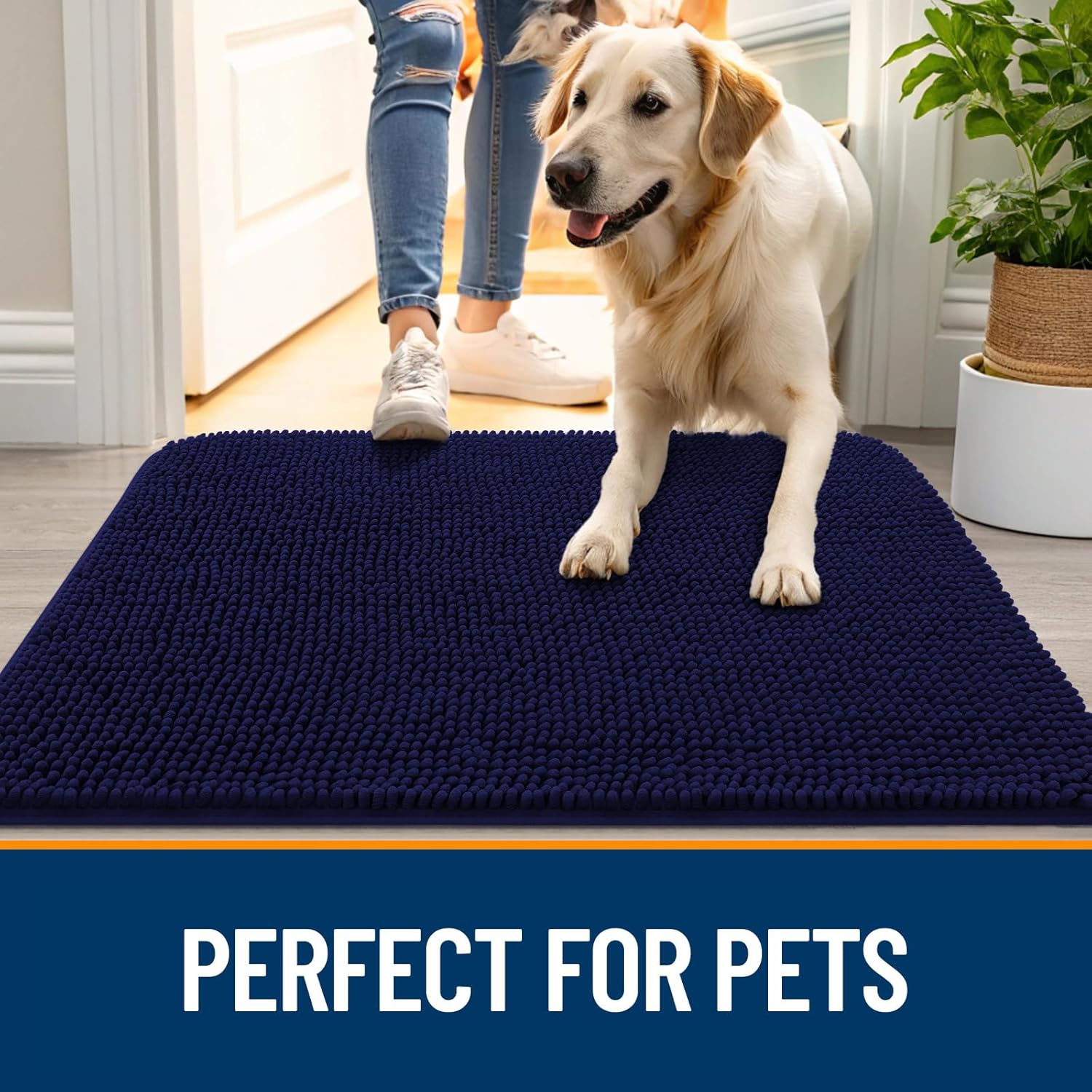 OLANLY Dog Door Mat for Muddy Paws 36x24, Absorbs Moisture and Dirt, Absorbent Non-Slip Washable Doormat, Quick Dry Chenille Mud Mat for Dogs, Entry Indoor Entryway Carpet for Inside Floor, Navy Blue