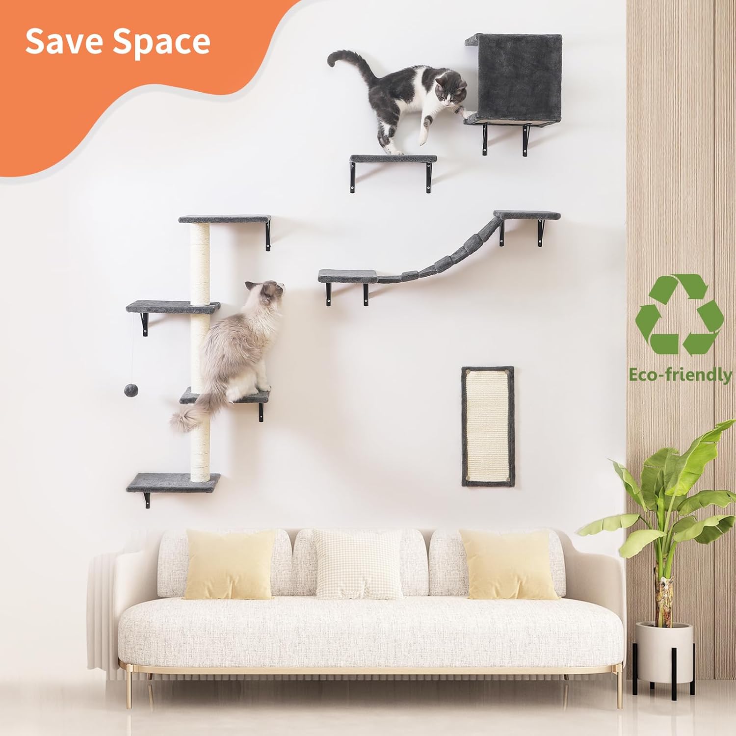 • [Deluxe Cat Wall Shelves] This 5pcs cat wall climber set includes a plush cat bridge & steps, a scratcher, and a cat tree with sisal rope. Come on and build cat walkways on walls