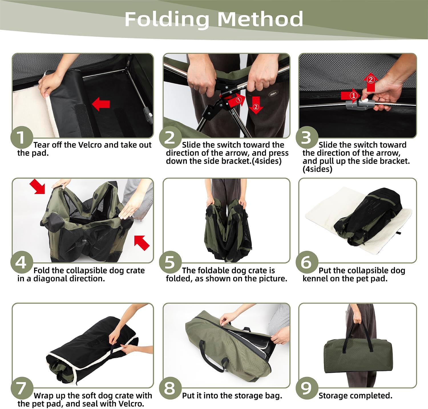 • HIGH-QUALITY STAINLESS STEEL TUBE: The collapsible dog crate is made of green stainless steel and does not use paint, ensuring resistance to beach conditions. The dog travel crate provides you with a safe worry-free outdoor experience.
