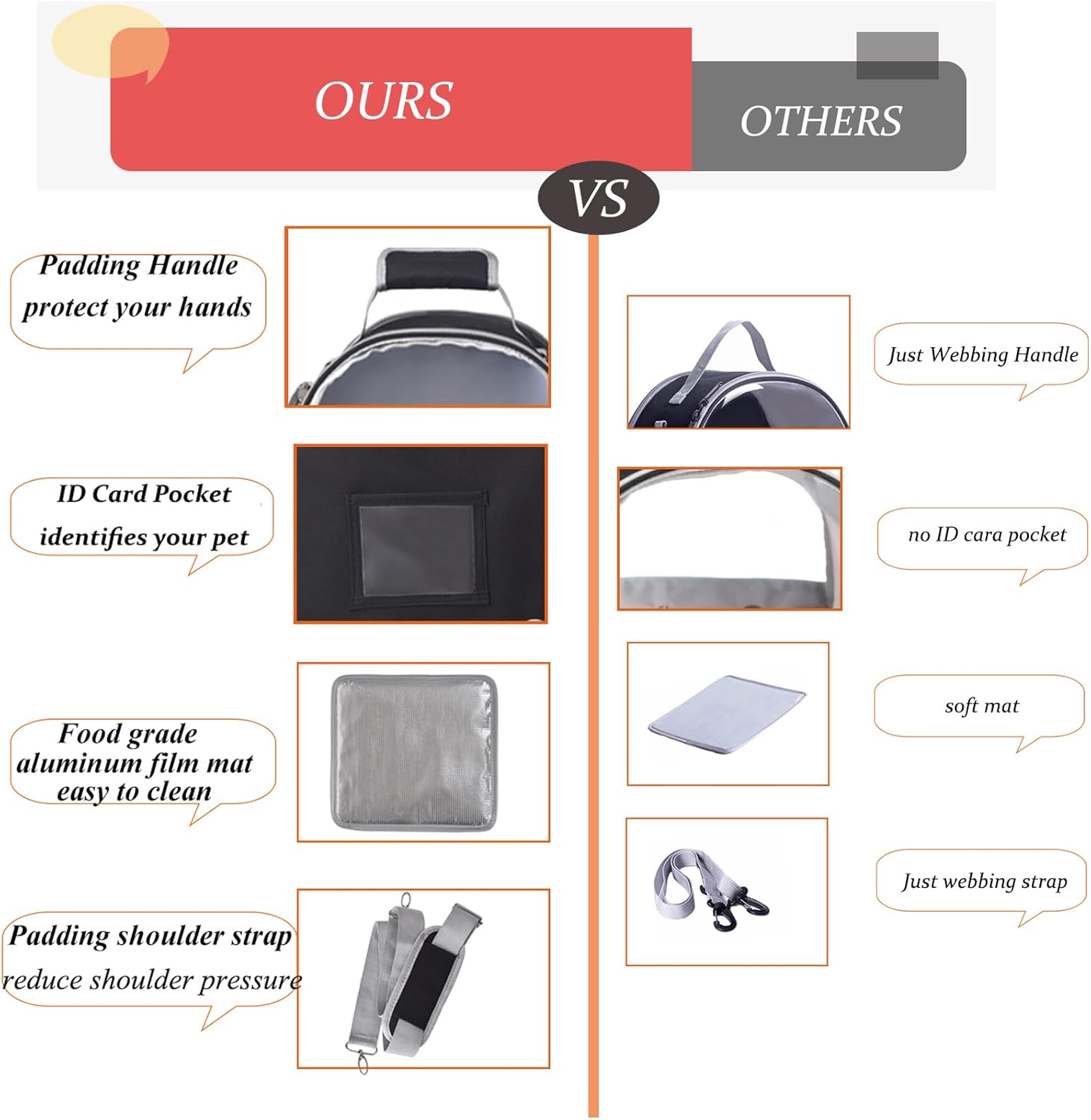 • 2.Five-sided Ventilation System: There are 6 ventilation holes located on the front, back and top of the small pet carrier bag, and two mesh windows on the left and right. This breathable enclosed environment ensures the safety and comfort of the animal