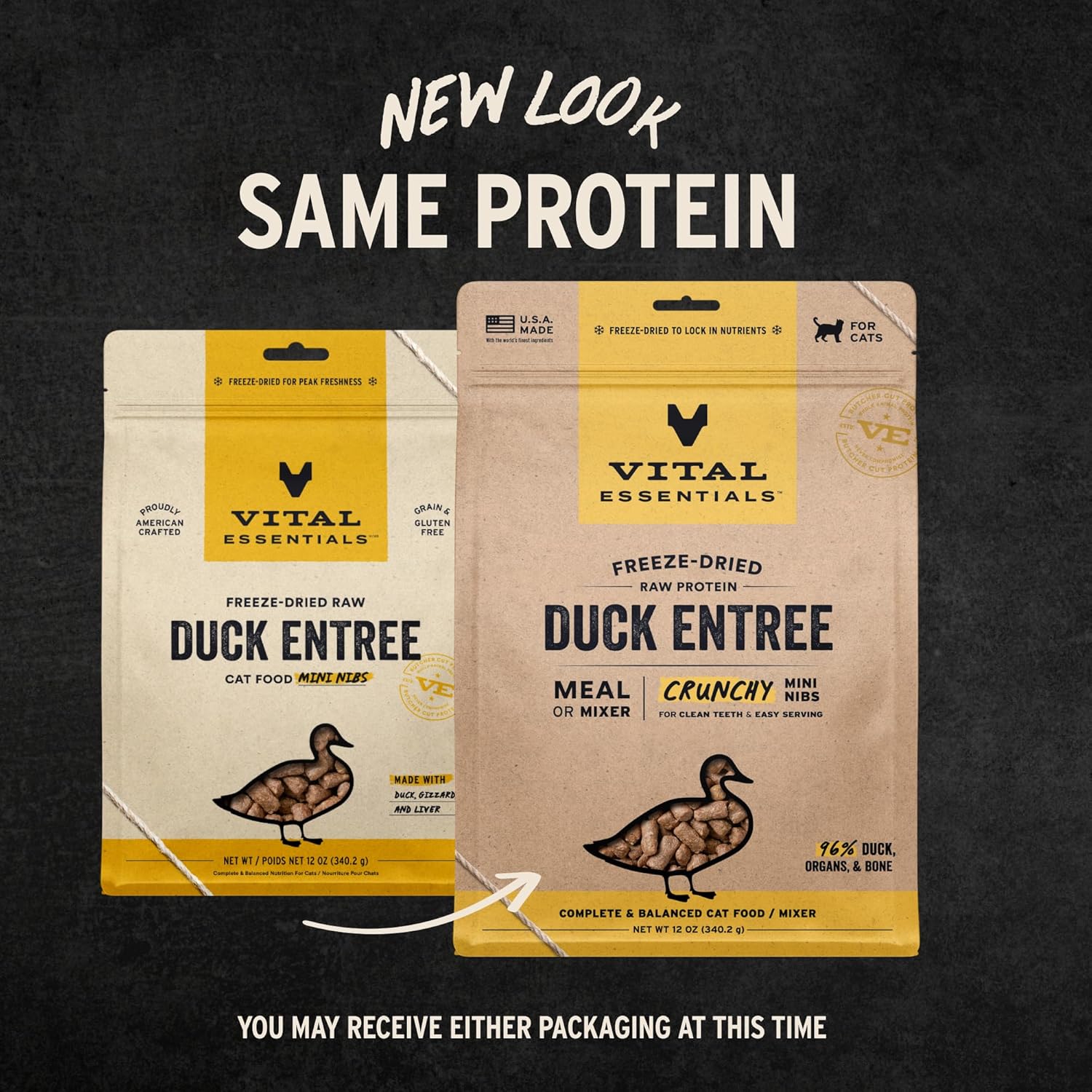 Vital Essentials Freeze-Dried Raw Duck Meal or Mixer Cat Food Crunchy Nibs, 12 oz